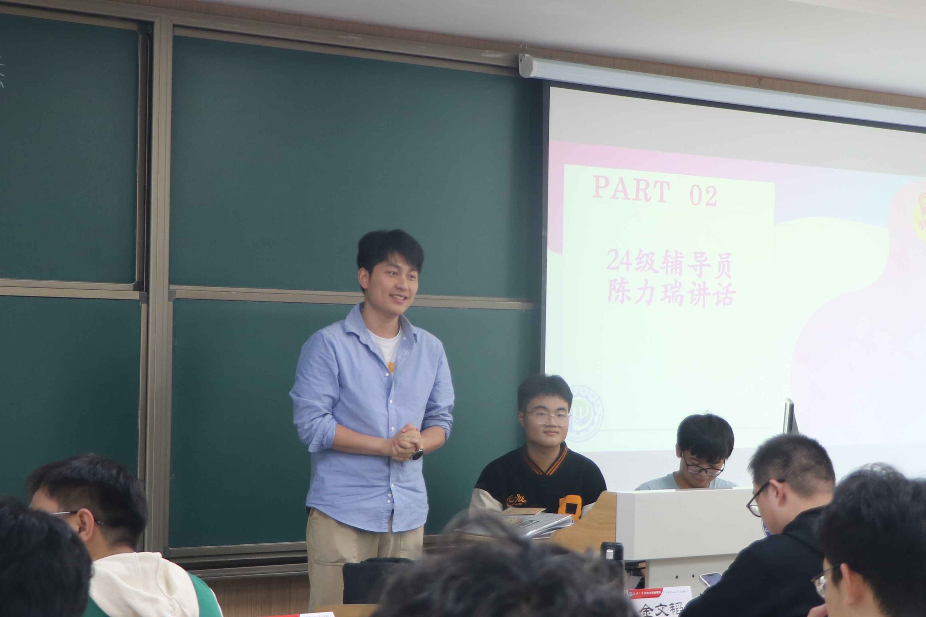 随后,王鑫发表了讲话。他首先对分团委各部门的职能进行了简要介绍,并对新成员的加入表示了热烈欢迎。接着,他对不同年级的分团委成员分别提出了不同要求与期望,他希望2022级成员能够行稳致远,把握好分团委的发展方向;2023级成员能够团结一心,通力合作;2024级新成员则能够继承传统,积极沟通。他号召大家共同努力,为建设更好的分团委而奋斗。