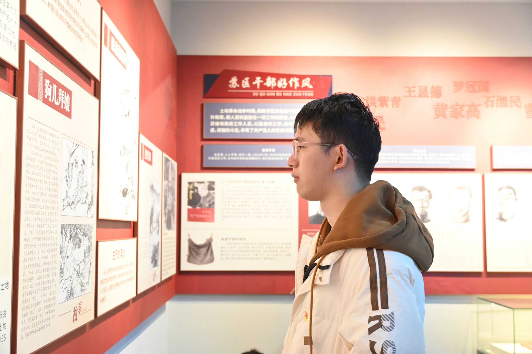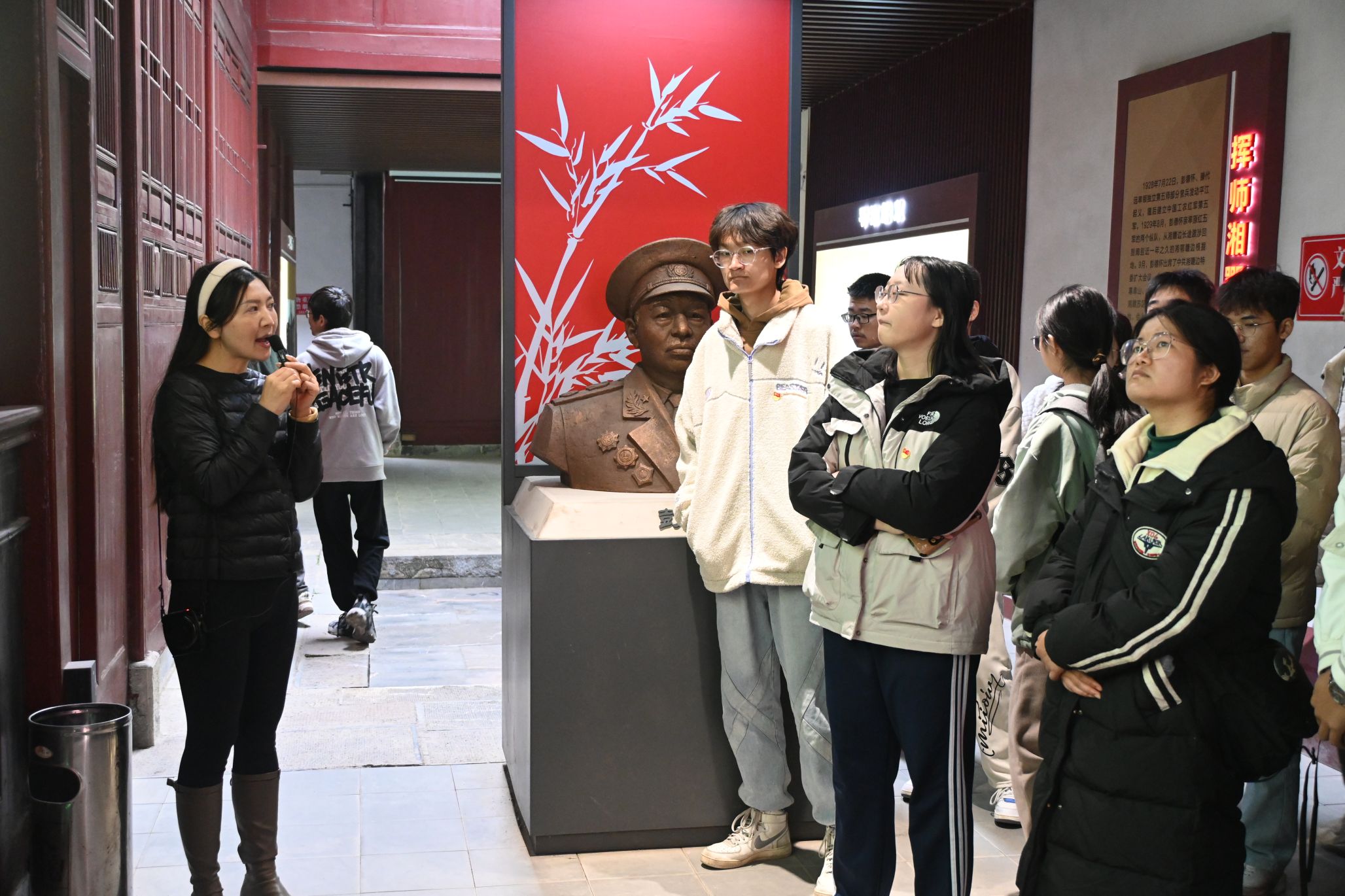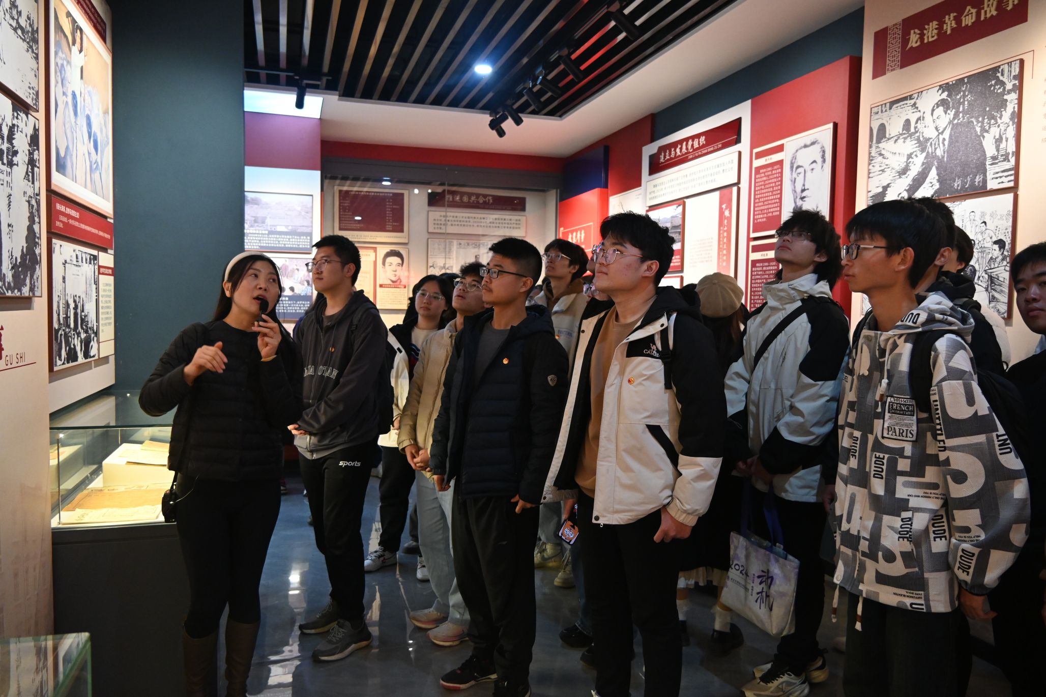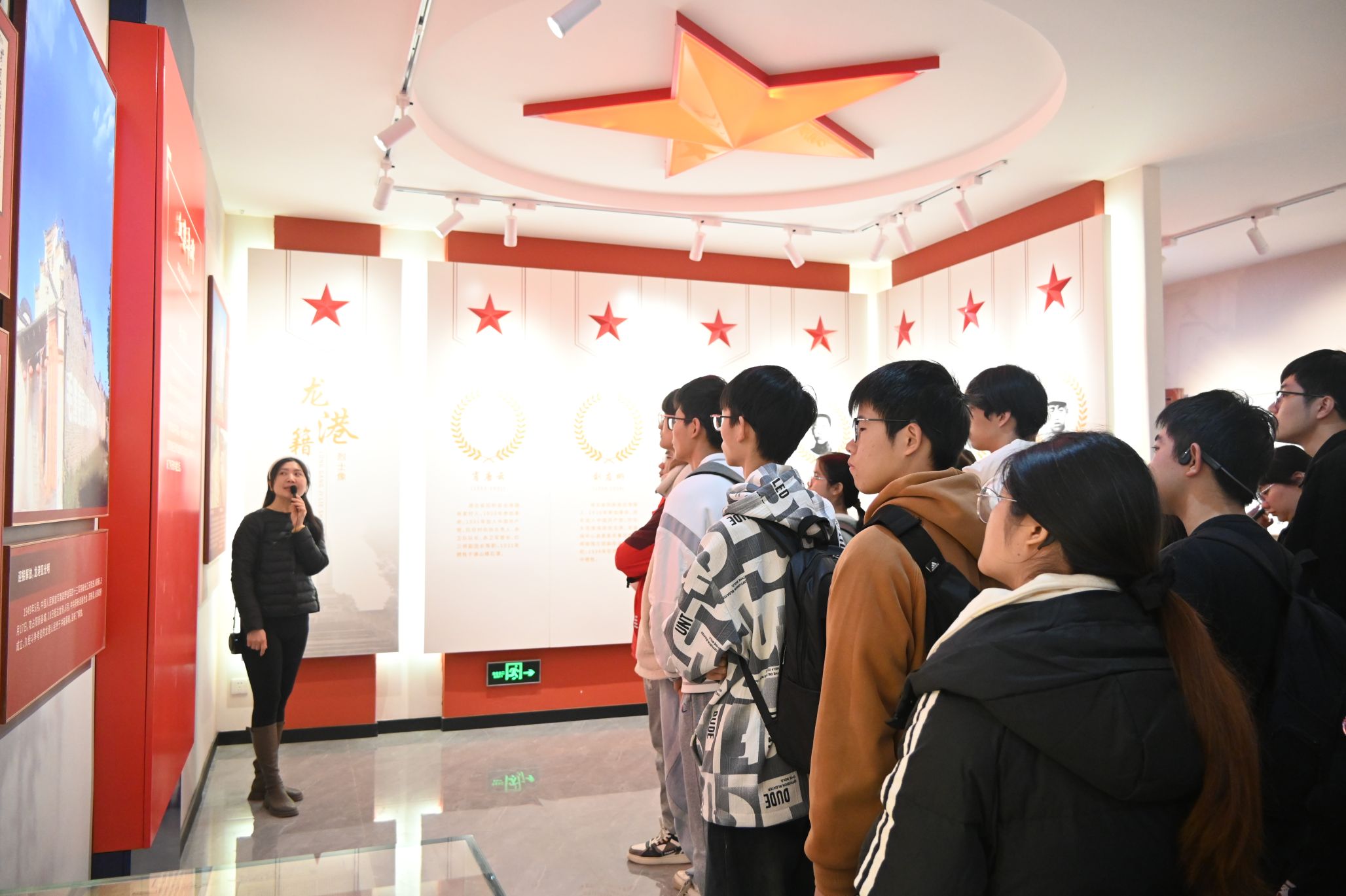 随后,师生们来到了龙港革命历史纪念馆。纪念馆内,一幅幅生动的历史画卷徐徐展开,从土地革命战争到抗日战争,再到解放战争,龙港作为鄂东南革命根据地的中心区域,见证了无数革命先烈的英勇事迹。同学们认真聆听讲解员的解说,仔细观看展品,不时驻足沉思,仿佛穿越时空,回到了那段激情燃烧的岁月。特别是当讲解员讲到红军副团长董自羊在攻打玉林山战斗中受伤后,因没有麻药,让医生直接用锯锯掉感染部位,仍坚持战斗,直至牺牲在龙港的故事时,同学们无不为之动容,深受感动。