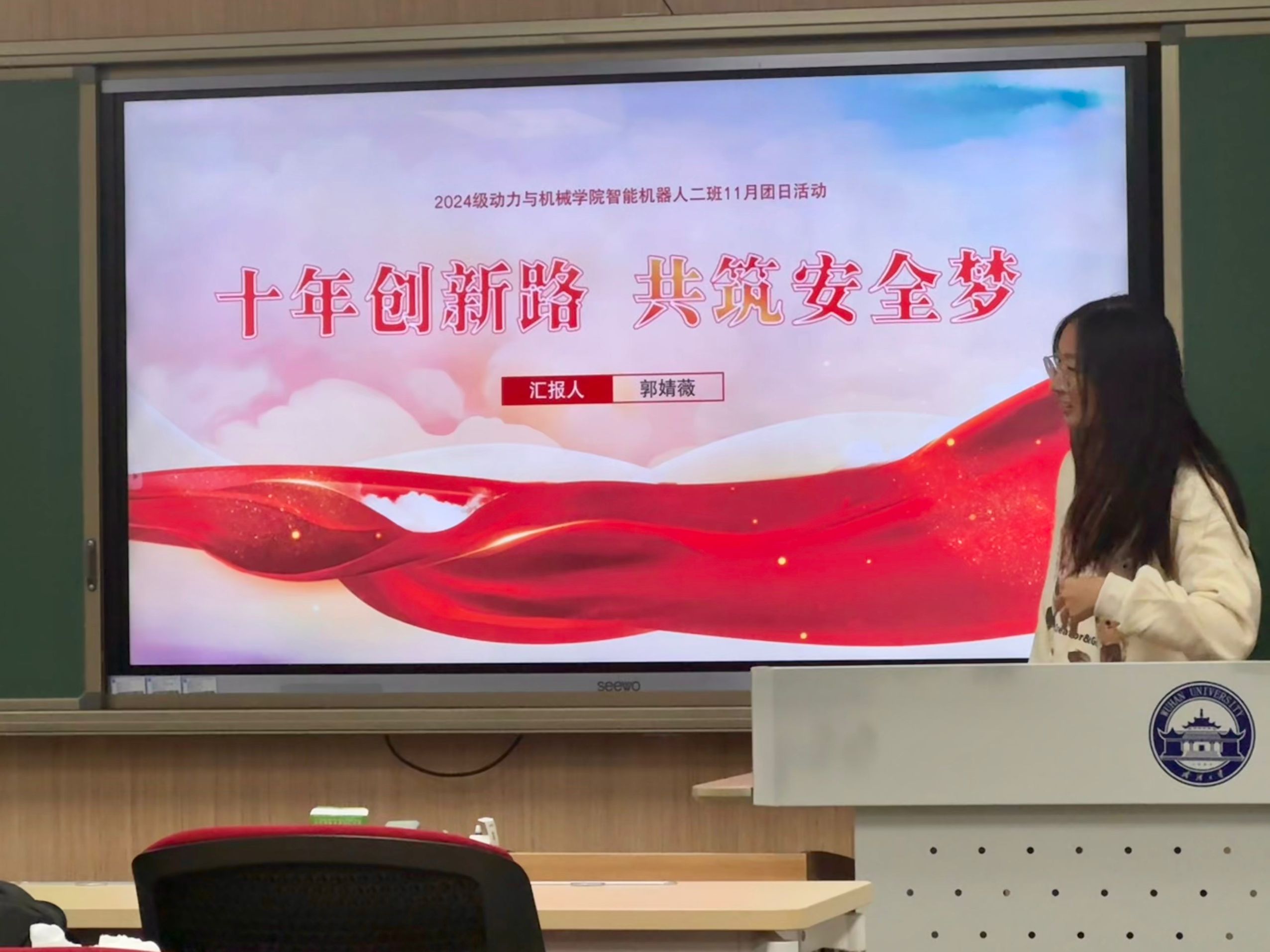 (通讯员:唐行航)山河锦绣,国泰民安。国家安全是一个国家生存和发展的前提,是一个民族屹立于世界民族之林的基础,也是人民群众的普遍愿望。为了维护国家核心利益,捍卫国家安全,创新是主要的推动力。创新是引领发展的第一动力,是经济发展的引擎与动力源。奋斗是时代不变的主题,创新是社会进步的源泉。为了培养团员青年们的创新意识,汇聚起维护国家安全的合力,让一切创造社会财富的源泉充分涌流,2024级智能机器人第二团支部于2024年11月22日晚七点在工学部主教A114举办相关主题团日活动,团支书郭婧薇主持了此次活动,并特别邀请了党员刘佳伶做了经验分享。全体团员出席,一起学习了创新精神并增强了对总体国家安全观的认识。