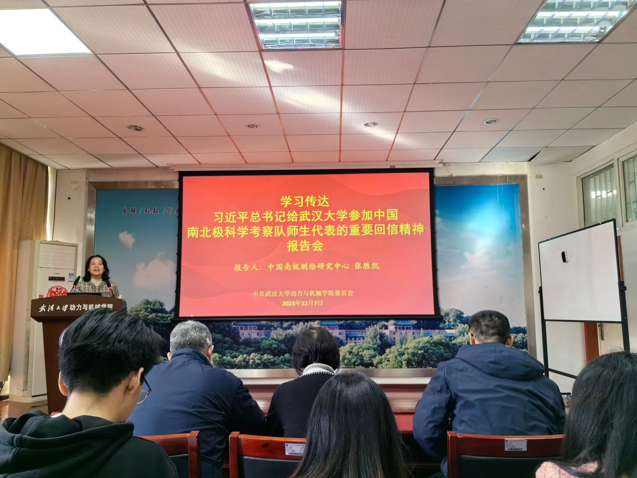 12月7日下午,学院在九教报告厅举行学习传达习近平总书记给巴卡漫画 参加中国南北极科学考察队师生代表的重要回信精神报告会,巴卡漫画 中国南极测绘研究中心张胜凯副教授为全院干部师生代表作《让五星红旗在南极上空高高飘扬》的专题报告。学院党委中心组全体成员、教师党员代表和本研总支及支部全体党员干部参加报告会,党委书记孙萍主持报告会。