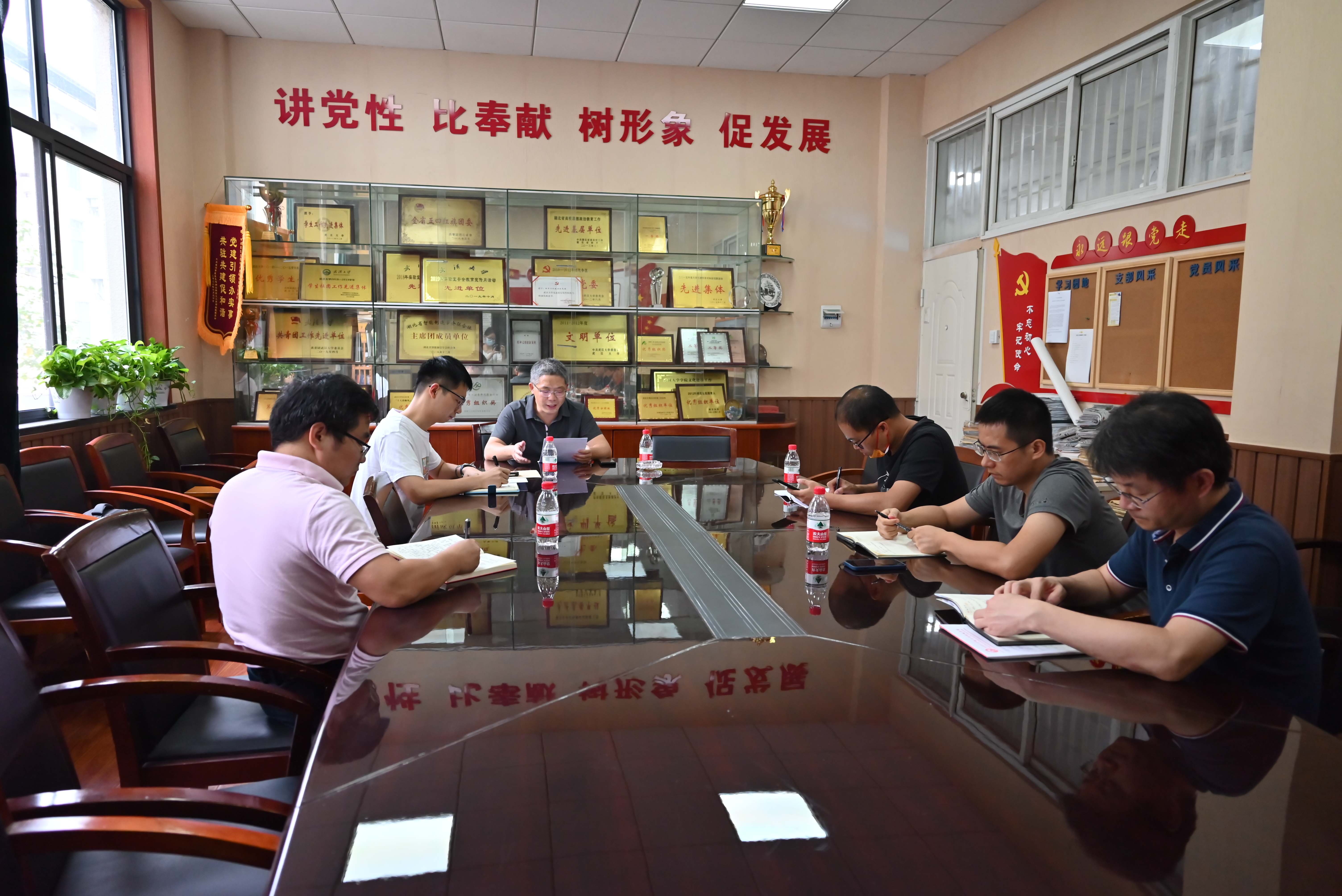 匡松围绕“三会一课”、科研经费的规范使用、师德师风、廉政教育、全面从严治党等方面工作展开交流分享,各党支部纪检委员也结合支部情况,积极提出自己的想法和建议。
