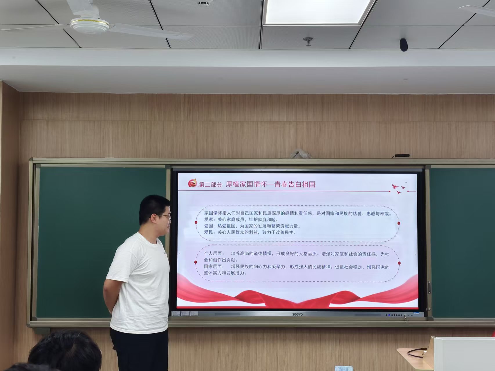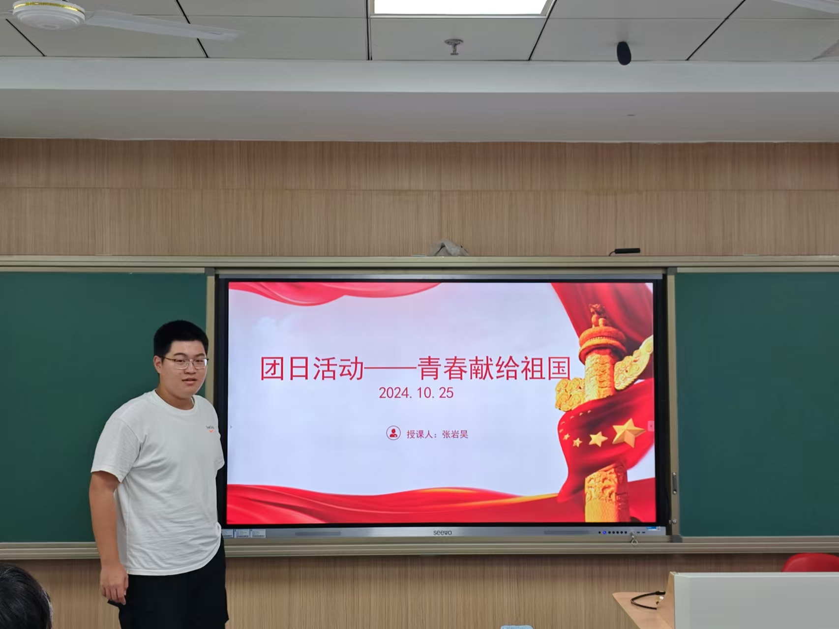 活动在庄严的团歌声中开始,团支部书记张岩昊发表了致辞,阐述了青年在国家发展中的重要角色,并鼓励大家以实际行动践行青春誓言。随后,张岩昊围绕“青春为中国式现代化建设挺膺担当”、“厚植家国情怀——青春告白祖国”、“学回信树强国志,立潮头践报国行”以及“大学生就业观念引领——就业引航,青春建功”等议题进行了深入的介绍和分析。
