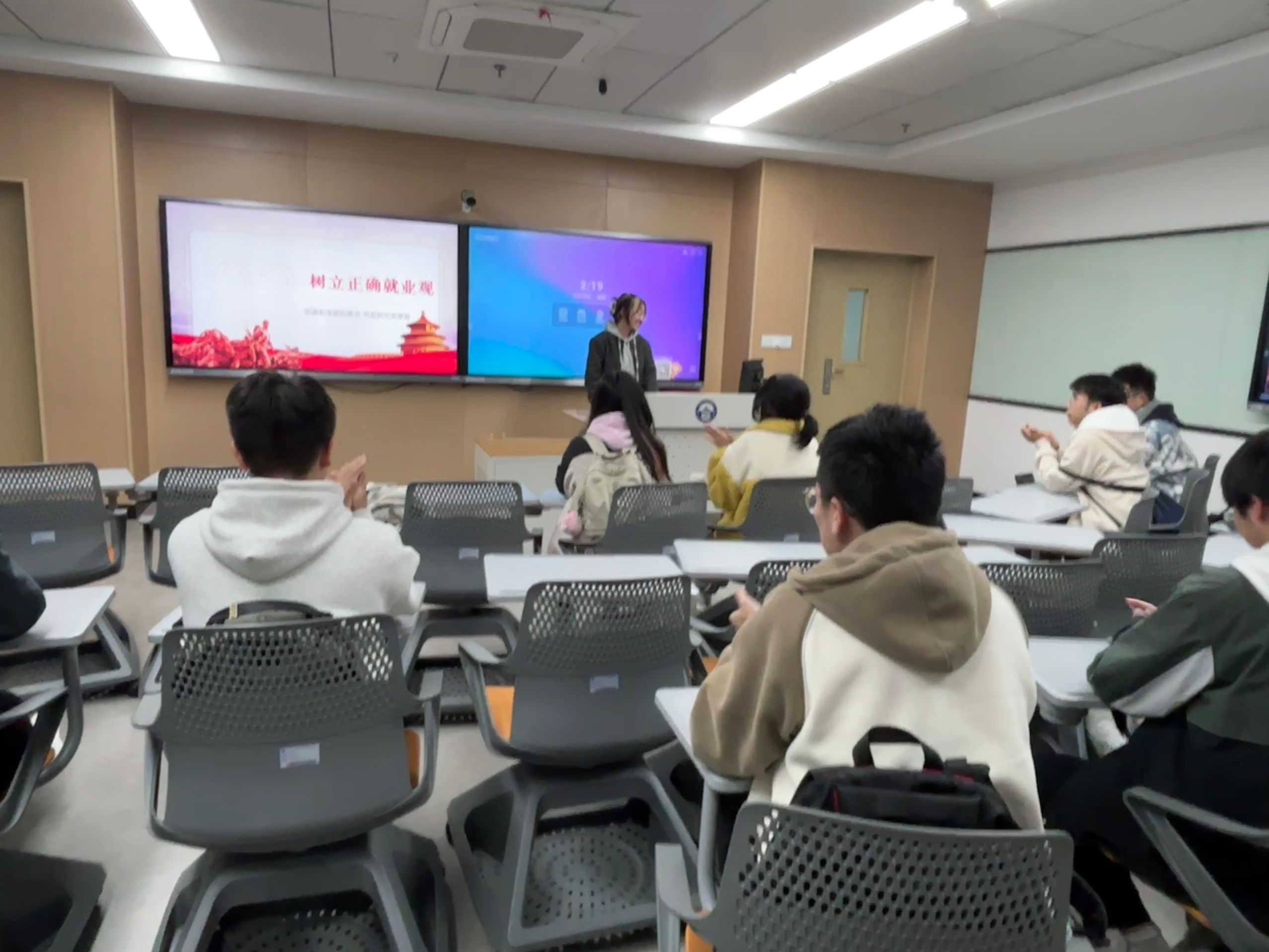 活动第二项,熊欣瑶引导团员青年们共同学习了正确就业观。通过团体朗诵、观看相关讲解视频、小组讨论等多种途径,团员青年们深刻领会了习近平总书记的期望和嘱托,认识到要坚持以人民为中心的发展思想,全面贯彻劳动者自主就业、市场调节就业、政府促进就业和鼓励创业的方针。