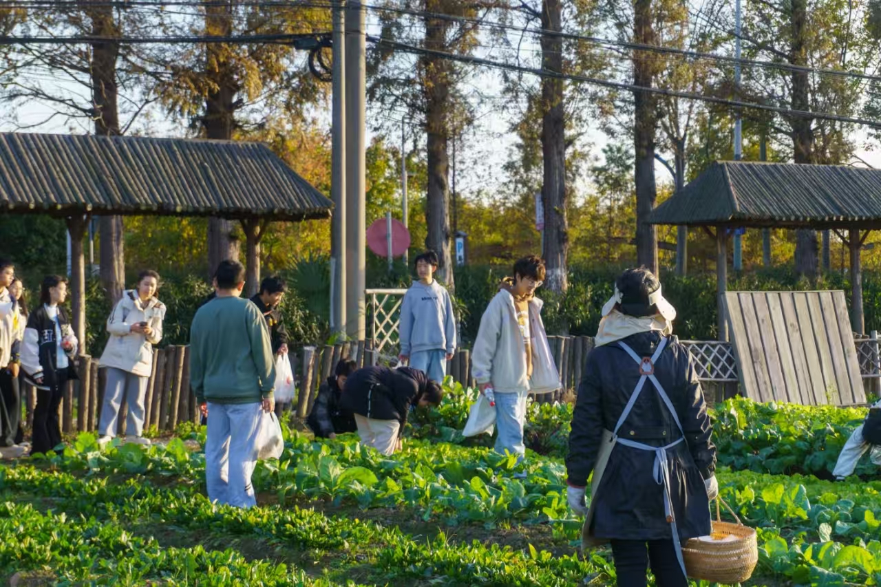 离开动物园区,学生们来到蔬菜种植区,体验农业的采摘乐趣。支部成员采摘了萝卜和香菜等作物,亲手感受田间劳作的辛苦与收获的快乐。村庄通过农旅融合模式吸引了大量游客。这种集种植、采摘和旅游体验于一体的创新发展模式,不仅提高了村民收入,也使农业成为一种新兴的体验式经济。