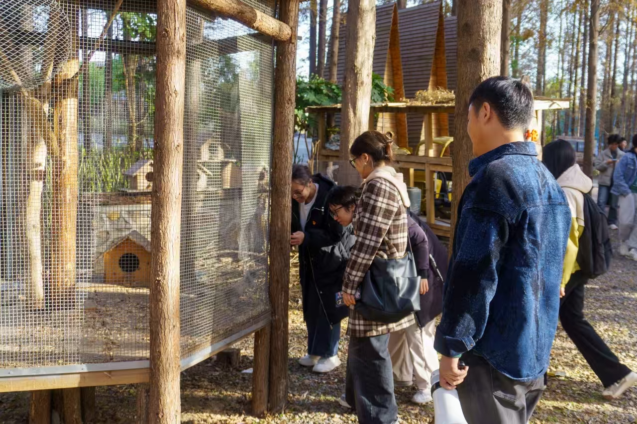 随后,党员来到村内的生态养殖园区。园区内,香猪、孔雀、鸵鸟、梅花鹿等动物在自然的环境中悠然自得,形成了一幅充满生机的乡村画卷。学生们在园区负责人陪同下参观动物养殖区,了解动物的饲养方式和生态养殖技术。