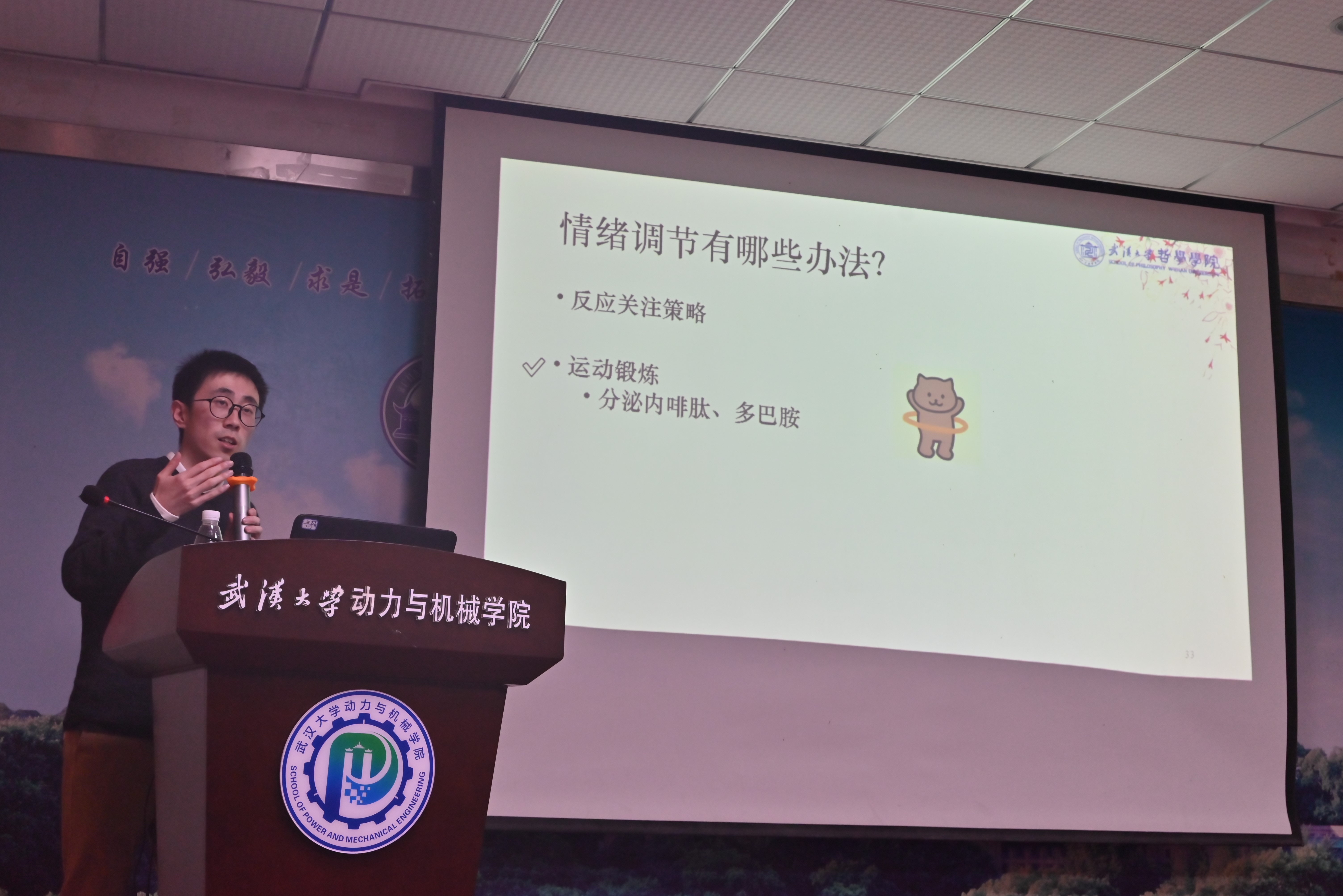 本网讯(通讯员:代洪伟 编辑:陈飏 审核:刘泽庭)4月1日下午,由院研究生党总支主办、院研究生会承办的心理健康教育主题讲座顺利举行,主讲人为巴卡漫画 心理学系特聘副研究员尉兆梁,讲座主题为“日常生活中的情绪心理学”。院党委副书记匡松、学工办副主任刘泽庭、学院部分教师、研究生班级心理委员及各课业室安全员参加了本次讲座。