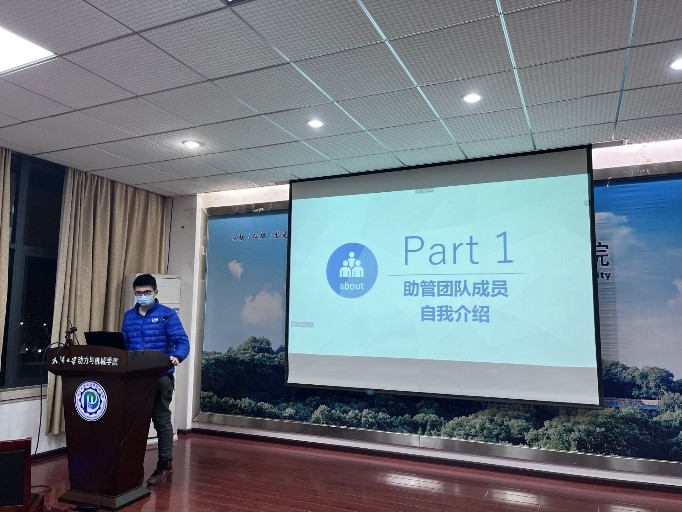 研究生助管们首先进行了简要自我介绍及亲切交流,随后团队成员代表王雷阳在会上分享了他上一年工作中的心得体会与收获成长,对学院领导老师的关心指导表示感谢,并对新学期工作进行展望,表示将继续本着全心全意为学院师生服务的宗旨,积极主动做好自己的工作。