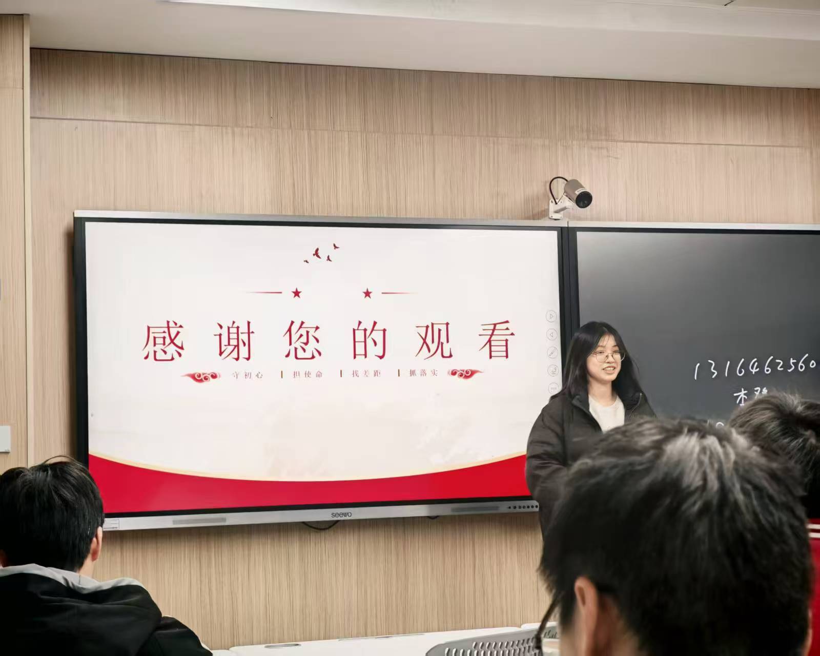 活动伊始,团支书陈泓冰发表了热情洋溢的讲话,强调了在新时代新征程上,青年学习党的二十届三中全会精神的重要性。她提到,作为国家的希望,青年一代更应深刻理解全会精神,以创新精神引领实践,为维护国家安全贡献青春力量。陈泓冰通过生动的案例和详实的数据,阐述了全会对于青年成长和国家发展的深远意义,鼓励团员青年们将个人理想与国家命运紧密相连,在实现中华民族伟大复兴的征程中书写青春华章。她提到:“党的二十届三中全会为我们指明了方向,作为新时代的青年,我们要坚定理想信念,勇立潮头,以实际行动践行全会精神。”