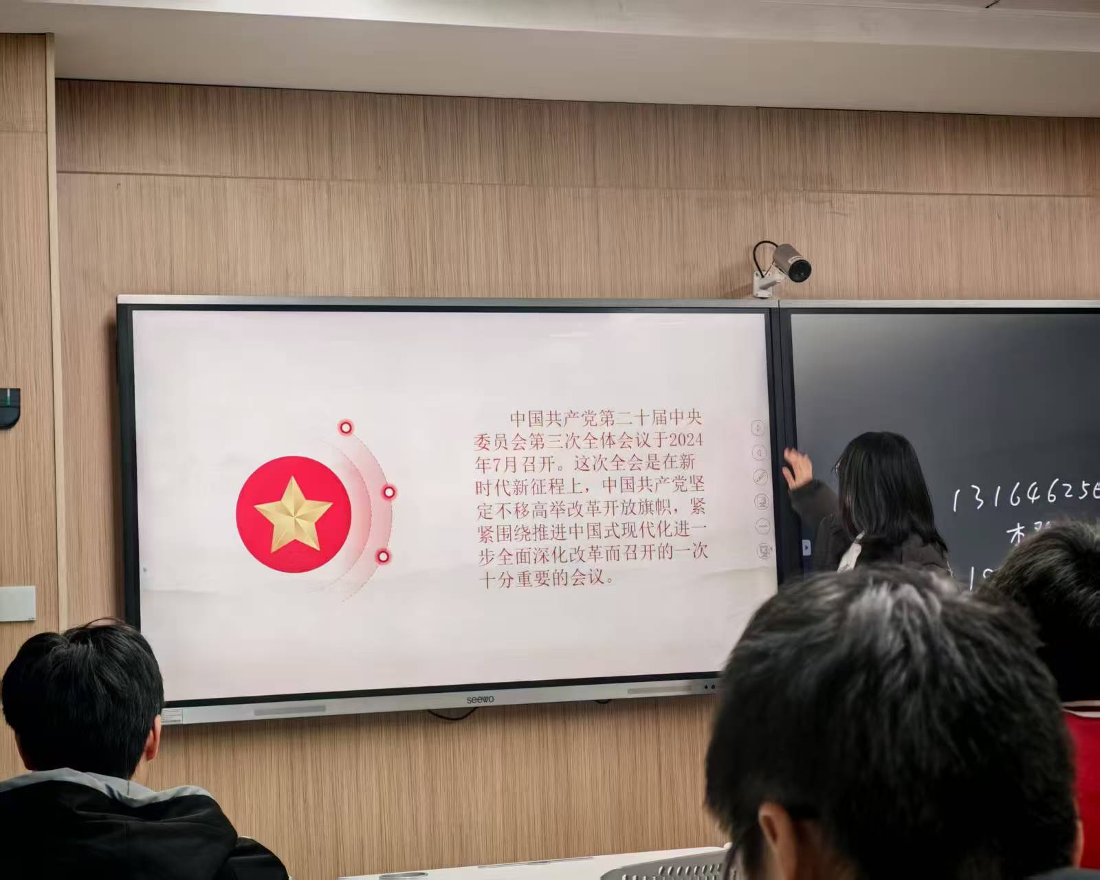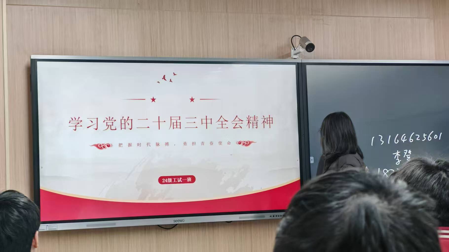 在活动中,团支书陈泓冰通过精心制作的PPT展示和深入浅出的案例分析,对党的二十届三中全会的背景、意义和主要内容进行了详细解读。她从全会召开的时代背景切入,阐述了中国共产党在新时代新征程上坚定不移高举改革开放旗帜、推进中国式现代化的战略决策。使团员青年们对全会精神有了更直观认识。随后,团员青年们被分成若干小组,围绕“如何在日常学习和生活中践行全会精神”这一主题展开热烈讨论。各小组成员积极发言,结合自身专业特点和未来规划,探讨了在科技创新、社会实践、志愿服务等方面的具体行动路径。讨论结束后,各小组推选代表进行了精彩发言,分享了小组讨论的成果和共识。一位同学代表表示:“通过讨论,我们深刻认识到作为工科学生,应在科技创新领域勇挑重担,为实现科技强国梦贡献自己的智慧和力量。”