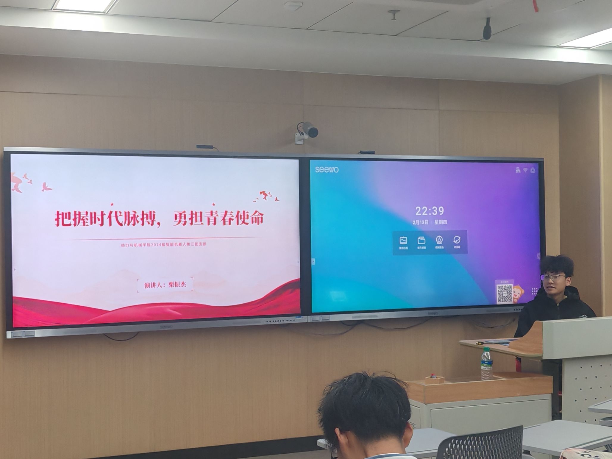 随后,由组织委员黄悦围绕抗美援朝精神展开深入讲解。通过PPT展示,团员青年们了解到了抗美援朝精神的内涵与价值。在极端恶劣的环境下,志愿军战士展现出的革命英雄主义精神令人动容。他们以顽强的毅力与敌人展开殊死搏斗,这种精神不仅体现在战场上的英勇无畏,更体现在对革命事业坚定不移的信念和无私奉献上。这激励着团员青年们在面对困难和挑战时,要勇于担当、敢于拼搏。同时,志愿军战士在艰苦战争环境中始终保持积极乐观的态度,用歌声和信念驱散战争的阴霾,这种革命乐观主义精神,让团员青年们认识到在生活和学习中,要保持积极向上的心态,增强心理韧性,在困境中寻找机遇。