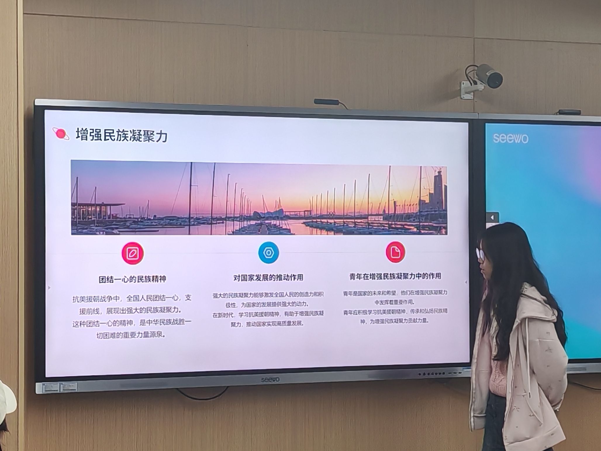 而后,黄悦又强调了学习抗美援朝精神具有重要意义,一方面它能增强民族凝聚力。抗美援朝战争中全国人民团结一心支援前线,强大的民族凝聚力能激发人民的创造力和积极性,推动国家发展。青年作为国家的未来和希望,应积极学习这种精神,为增强民族凝聚力贡献力量。另一方面,它有助于培养青年的责任感。在新时代,青年肩负着实现中华民族伟大复兴的历史使命,抗美援朝精神中的责任感和使命感为青年树立了榜样。团员青年们要在学习和工作中发扬艰苦奋斗、无私奉献的精神,将抗美援朝精神转化为实际行动。