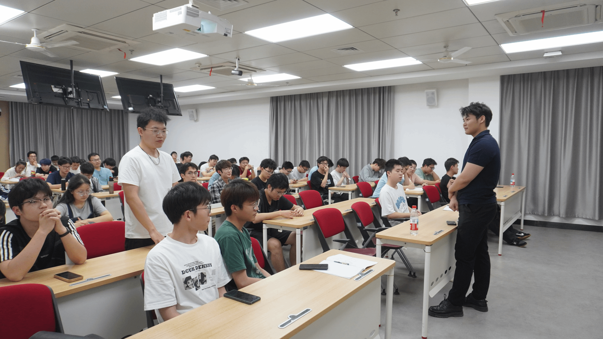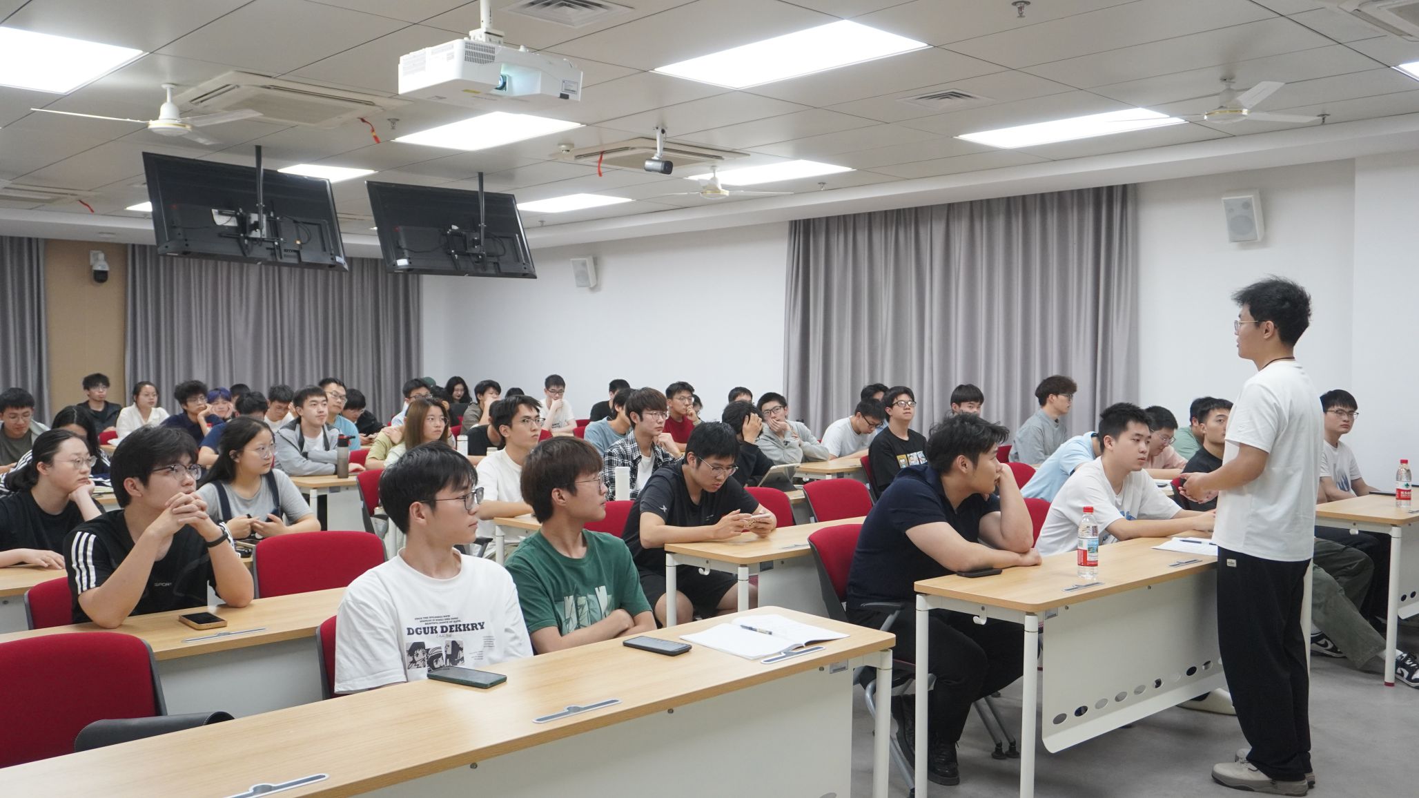 胡澳学长则用轻松幽默的语言回应了同学们提出的问题。他坦言,遇到科研瓶颈在所难免,建议大家理性评估后选择坚持或适度转向。他还特别提醒:“读研不仅是学术积累,也是自我成长的一部分”,建议大家在研究生阶段主动探索兴趣、广交朋友,度过一段充实有意义的时光。