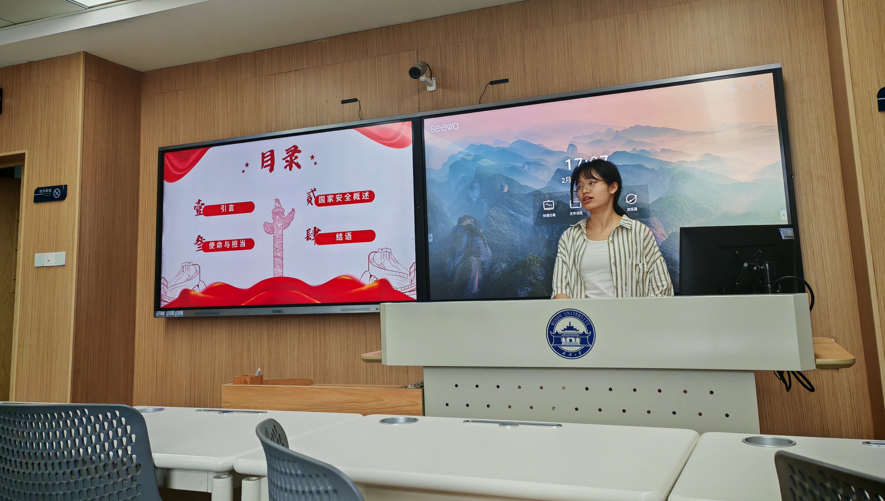 活动伊始,饶芝欣以《中华人民共和国国家安全法》颁布十周年为切入点,系统梳理国家安全教育日的由来与时代意义。通过对比2015年至今国家安全形势的演变,重点解读习近平总书记“坚持总体国家安全观”的战略部署,强调“国家安全无小事,人人都是防线”的理念。从政治安全、经济安全到网络安全、科技安全,多维度的剖析令在场团员青年们深刻认识到,国家安全不仅是国家的命脉,也与每个人的生活息息相关。