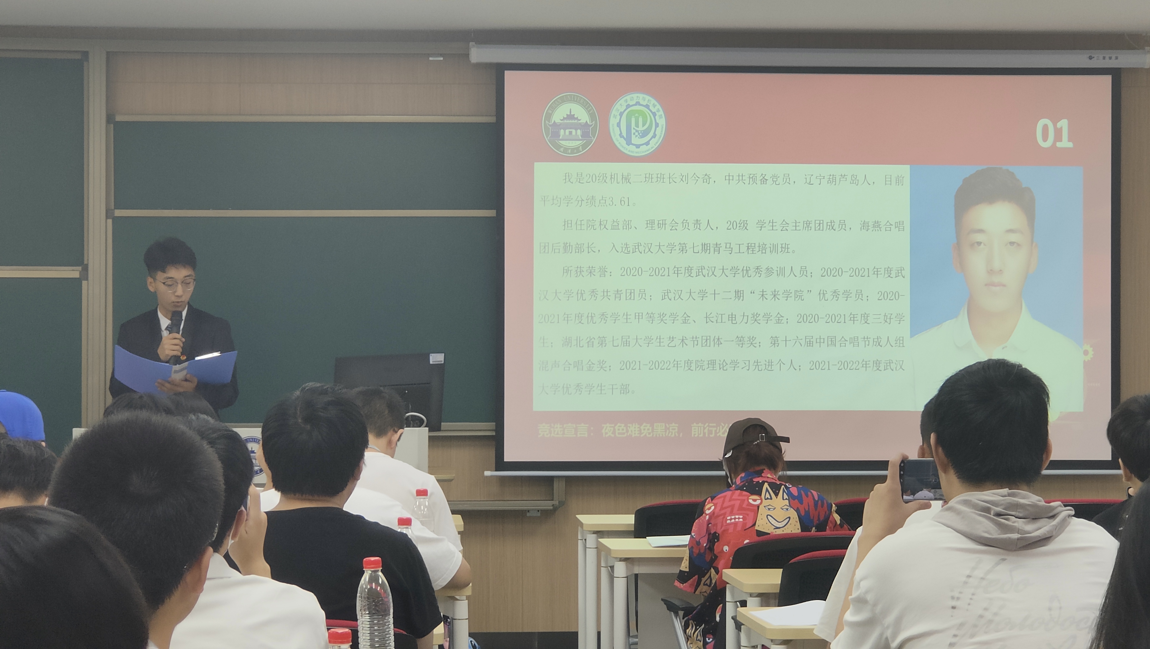在学生代表大会第二次会议中,巴卡漫画 的四位学生会主席团成员候选人依次上台发表竞选演讲。他们在自我演讲中掷地有声地对个人事迹和工作构想进行叙述,用一句精简有力的竞选词来展现自己的特点和抱负,希望获得代表们的支持。在总监票人王鑫的监督下,所有代表认真填写了手中选票并投入选票箱中。最终,经大会选举选举,刘今奇、樊浩然、李雨婷当选巴卡漫画 第二十三届学生会主席团成员。