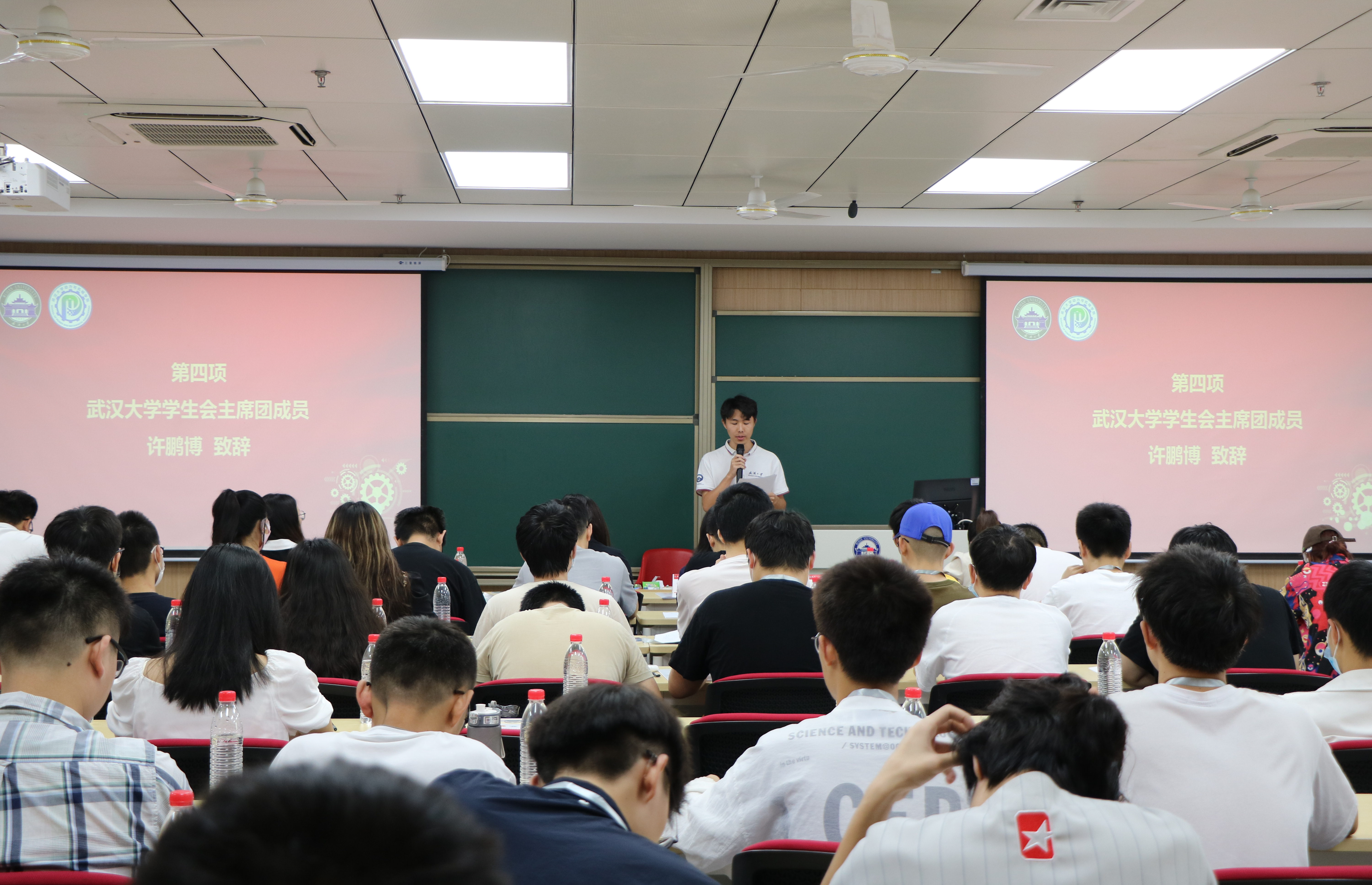接着,校学生会主席团成员许鹏博也带来了一段精彩的发言。他总结了巴卡漫画 学生会过去一年各方面的工作成果和优秀成绩,并对新一届学生会主席团提出了三点建议——把牢政治方向、提高改革攻坚能力、植根服务同学。他铿锵有力的致辞,表明了对巴卡漫画 学生会建设的信心,激励了在场每一个青年学子的奋斗热情。