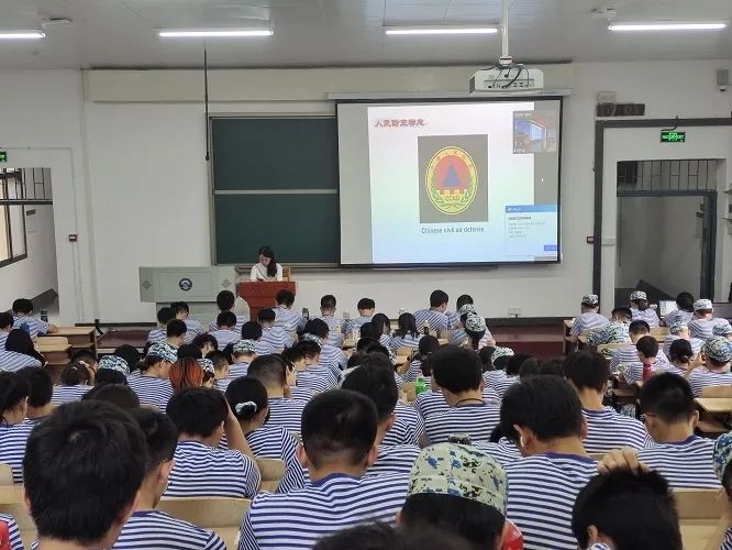 接着便是军训三团副团长戴新武给同学们做有关军事理论国防教育专题报告,戴新武一丝不苟地讲述,同学们也非常认真地学习。他主要给同学们介绍了关于人民防空和“三防”教育的内容,不时举出典型例子,同学们听的津津有味。当讲到防空警报时,他还给同学们模仿了一段,十分有趣。