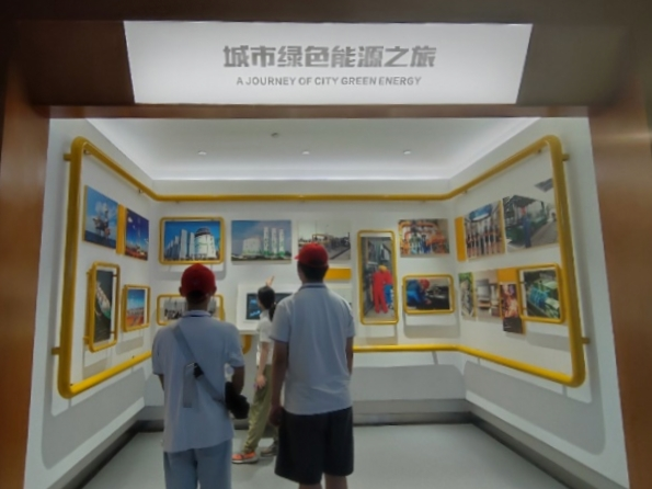 下午实践队来到了著有“绿色客厅”美称的绿色能源体验中心,体验中心是互动式、情景式、体验式的研学课堂,整栋大楼采用分布式能源和可再生能源供能相结合,实现了人、环境与建筑之间的绿色循环。在工作人员精彩的讲解下,实践队队员们打开了燃气新世界的大门。