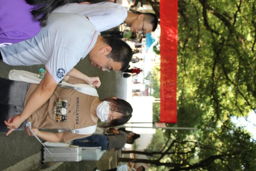 全体迎新工作者集合于洪波门旁的报到处,开启了一天的迎新之旅。来自全国各地的莘莘学子在热闹而有序的氛围中完成了入学的第一项工作,正式成为了珞珈山的一员。