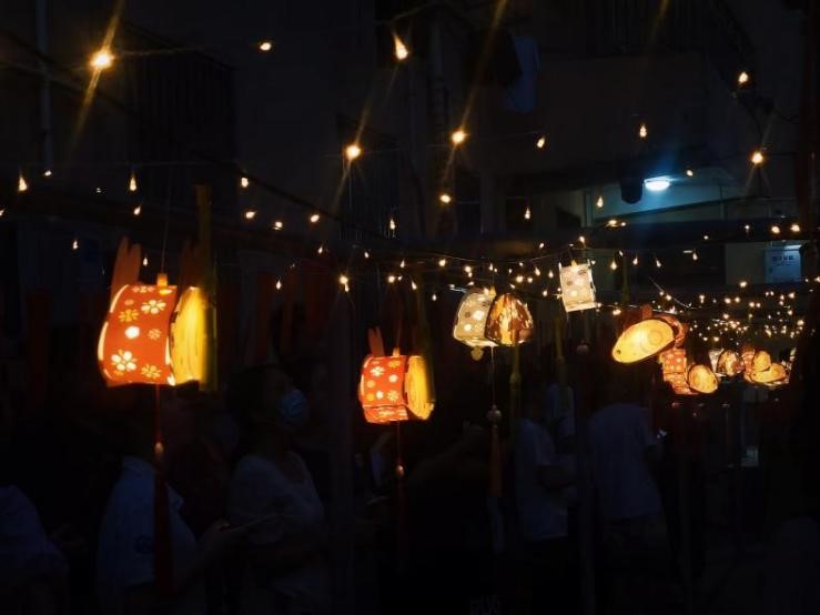 不到七点,活动区域就已变得熙熙攘攘,前来集赞换礼品的同学们早已排成长队。在逐渐变暗的天空下,灯笼发出温暖而浪漫的光芒,谈笑与讨论声穿梭在人群里,给这个平凡又祥和的夜晚增添了家的温暖。
