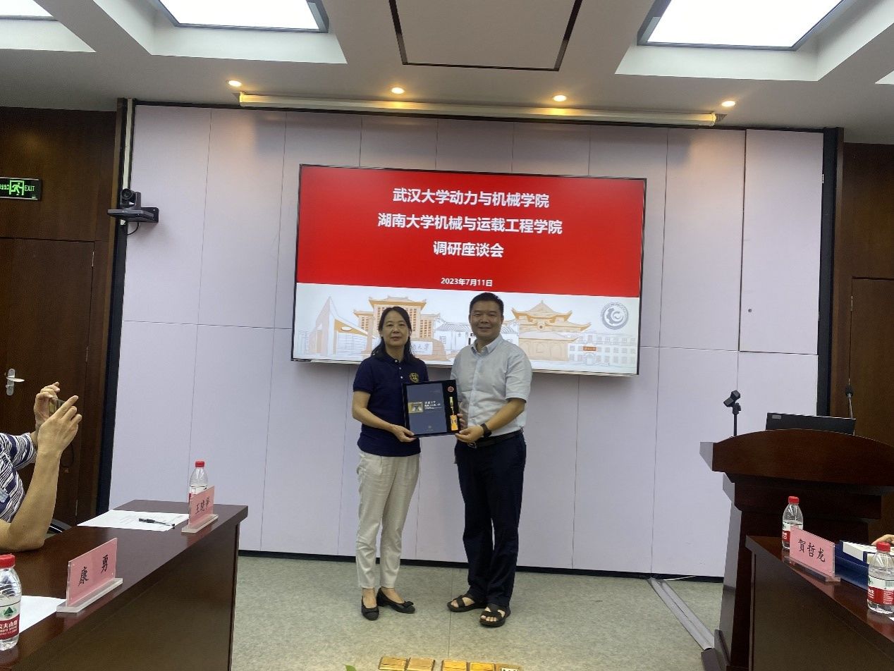 学院一行前往湖南大学机械与运载工程学院,双方就党建工作、人才培养、学科建设、学院管理等方面开展了深入交流。会上,学院还赠送了院史。学院一行还考察参观整车先进设计制造术国家重点实验室和岳麓书院。