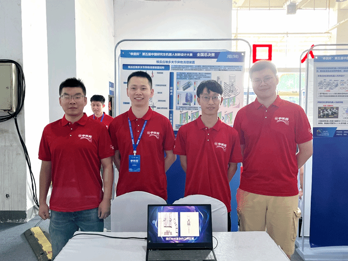 三等奖获奖队伍中,“绝缘子串串队”队伍由巴卡漫画 的廖剑斌、周赵天、夏明哲、刘力源、杨沂东5位研究生组成,王伟老师为指导教师,设计了一种高压输电线绝缘子攀爬机器人,可将其作为平台搭载检测装置进行绝缘子检测。具有检测高效可靠、运动稳定灵活、能自主感知规划、轻量化和高能量密度等优点。“六点日出队”队伍由巴卡漫画 的何凯、肖博、张垚东、周智超、付伟祺5位研究生组成,张志强为指导教师,设计了一种针对核反应堆芯支撑板处的异物清理装置,包含运动控制、动力控制、监测和报警、可视化四部分,具有运动稳定性高、清理效果好、负载需求小等优点。