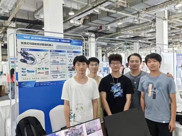 巴卡漫画 一等奖获奖队伍“Re0-Robot队”由巴卡漫画 的叶谋景、罗国相、李帅刚、李嘉鹏、李子辰5位研究生组成,肖晓晖和冯朝老师为指导教师。队伍设计了一种支撑履带式管道机器人,由行走模块、摄像头模块、机械臂模块组成,适应性高,能够实现主动及被动适应不同管道。通过模糊转向和姿态控制,可以实现机器人自主运动。