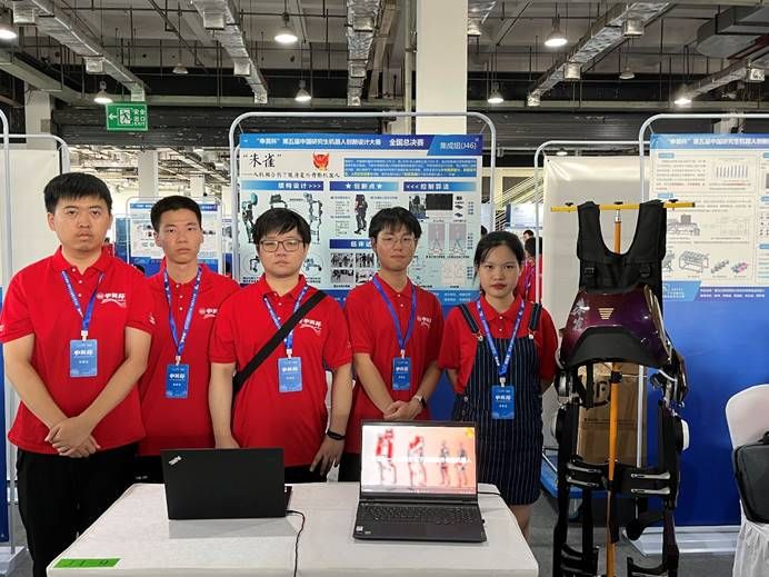 二等奖获奖队伍“朱雀外骨骼队”由巴卡漫画 的伊烁闻、廖玥如、付志军、杨潇和廖峻北5位研究生组成,郭朝老师为指导教师,队伍设计了一种下肢平衡康复外骨骼机器人,其融合了机械设计、传感、最优控制以及人工智能技术,为操作者提供一种辅助助力的可穿戴设备,具有安全与方便拆卸的特点,能够实现患者在康复后期自主训练。“学姐后援团队”由巴卡漫画 的程佳慧、李正顺、袁竞一、陈万江和李瑞颉5位研究生组成,肖晓晖老师为指导教师,队伍设计了一种机器人遥操作数字孪生系统,结合遥操作与数字孪生技术,利用虚实交互实现对机械臂的实时监测,根据不同手势映射为机械臂末端不同位置或夹爪不同动作,并利用防抖滤波算法解决手部抖动问题。