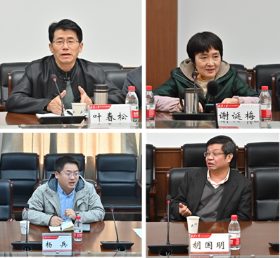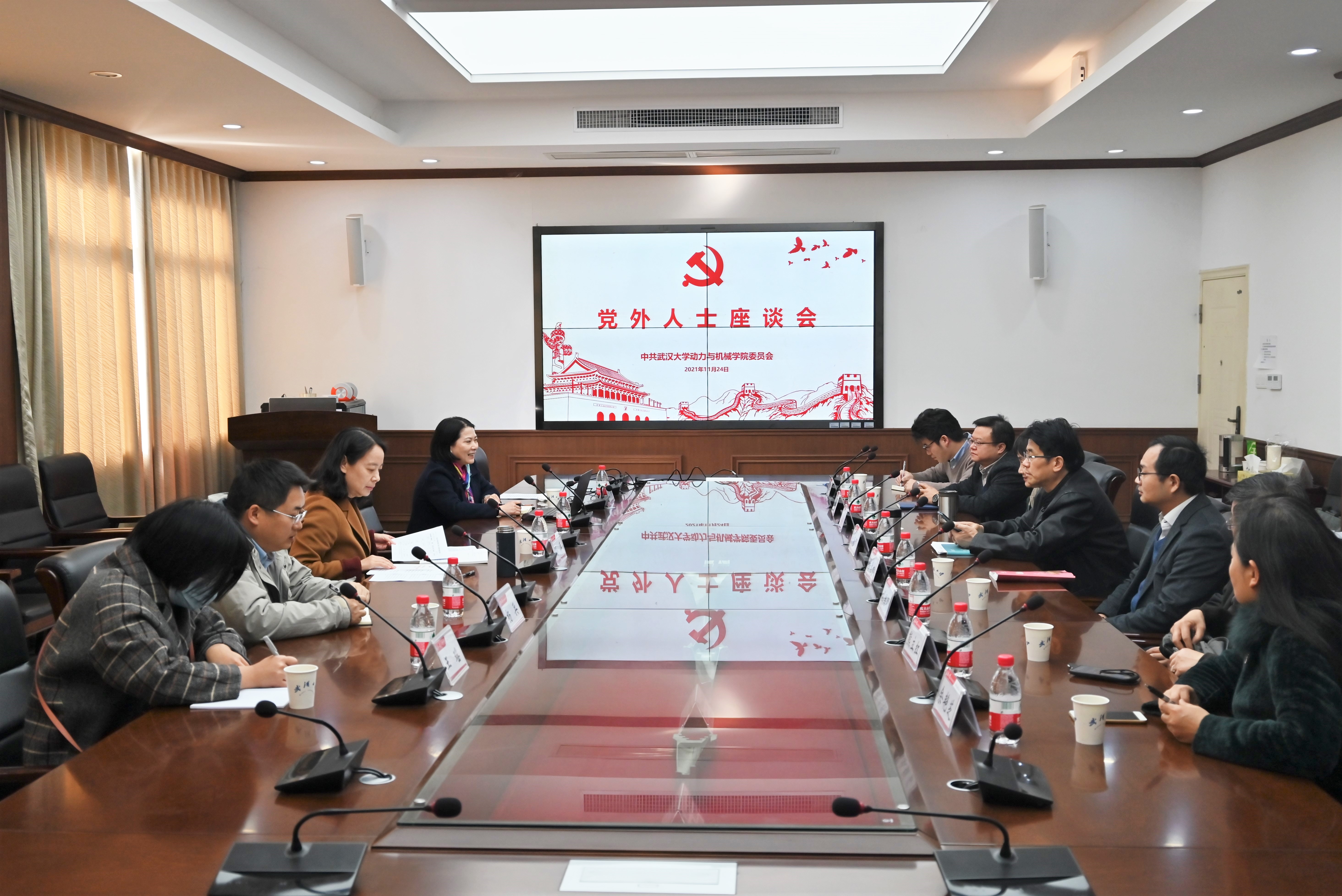 院党委书记孙萍,党委副书记李琦,省政协常委、民盟湖北省委副主委叶春松,民盟湖北省委会青年工作委员会副主任、民盟武昌区工委副主委梅青松,民盟校委会副主委定明月,民盟校委会委员杨兵,民盟胡国明、余艳芝,致公党工学部支部副主委熊立红,无党派人士谢诞梅、王瑶、刘抗等学院民主党派及无党派人士参加座谈会。会议由李琦主持。