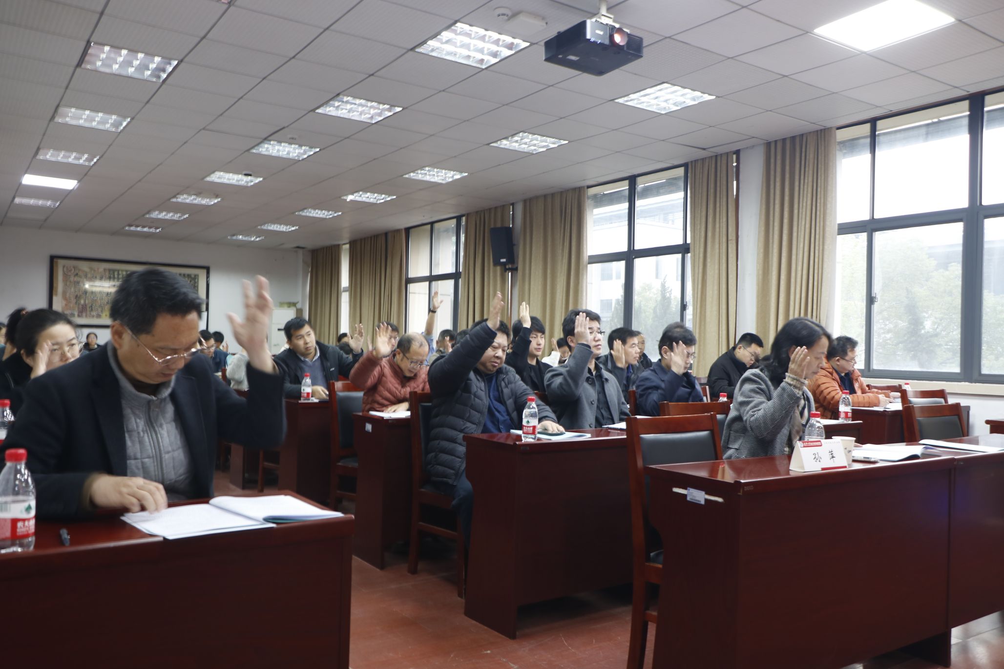 尔后,书面审议了《学院工会工作报告》,并开展讨论环节。最后审议表决《学院工作报告》、《学院工会工作报告》,代表们对学院工作给予了肯定,认为学院工作报告总结全面、内容详实、思路清晰、重点突出,在充分肯定的基础上提出了宝贵的建议。代表们举手表决通过了《学院工作报告》、《学院工会工作报告》。