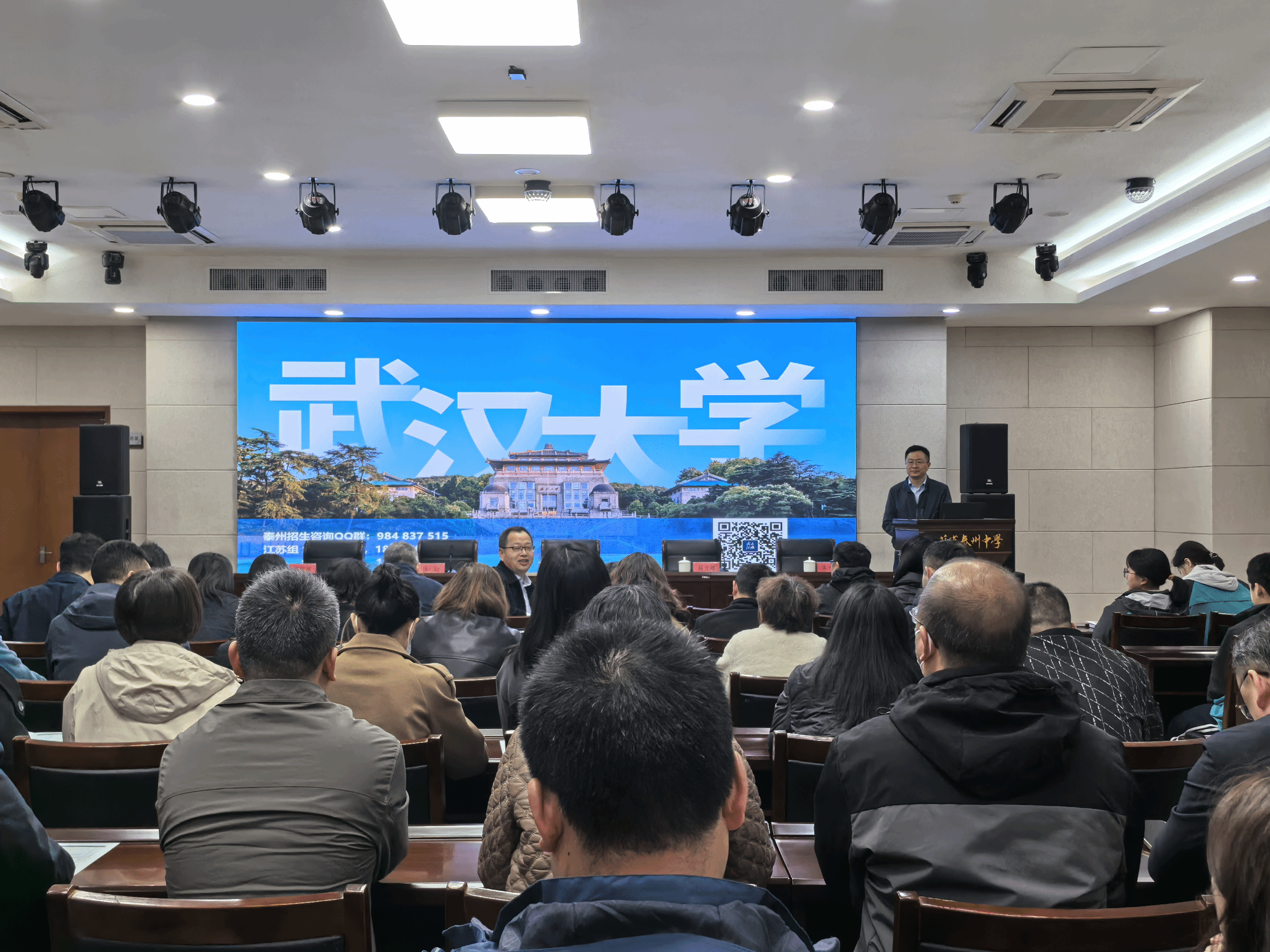 座谈会结束后,黄泰岩书记一行等前往泰州中学,李德仁院士为为泰州中学师生作了“爱我中华,科技报国”为题的科普讲座。吴奕、匡松向泰州中学高三年级学生及家长一百余人开展招生宣讲与咨询,现场气氛热烈,互动频繁。