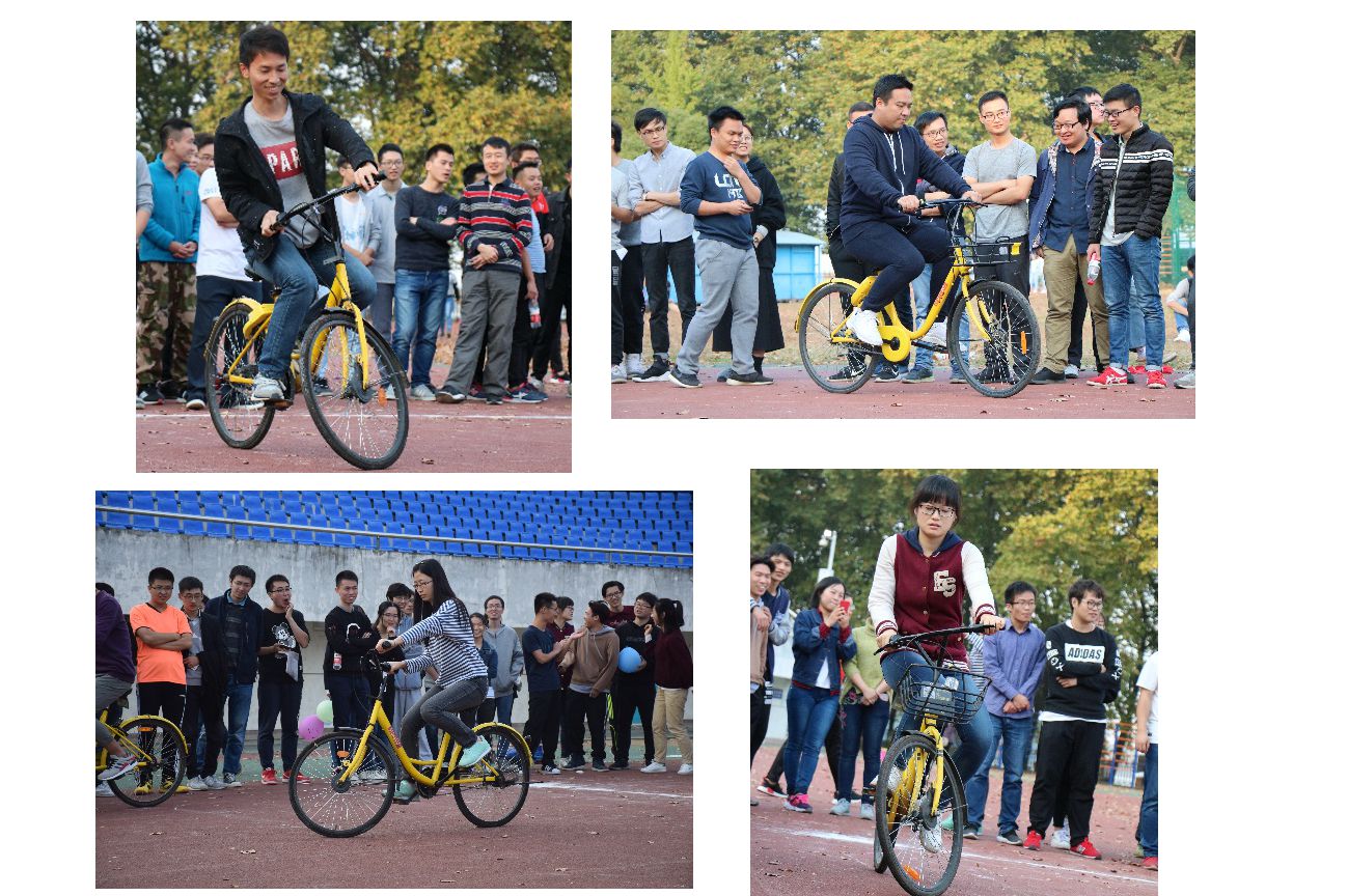 龟速骑行虽然是第一次被加入到趣味运动会的项目中,但从报名情况来看,也是相当火爆的,一共有40人报名参与,老司机的水平都不是一般的高,坐着骑的、站着骑的、严肃的、活泼的,都有。