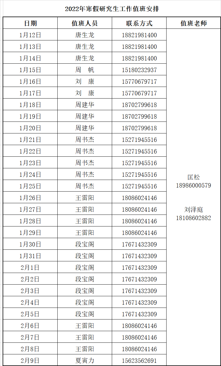 2022年寒假研究生工作值班安排