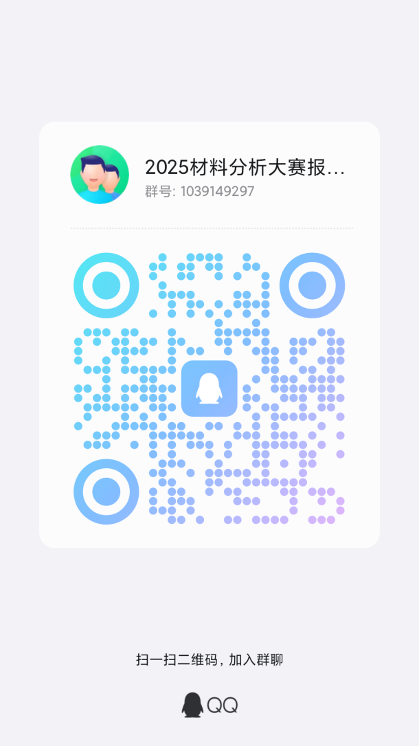 2025年3月17日至2025年4月16日,加入“2025材料分析大赛报名群”QQ群(群号:1039149297),并按要求将学号、姓名、专业、电话登记给竞赛组教师。