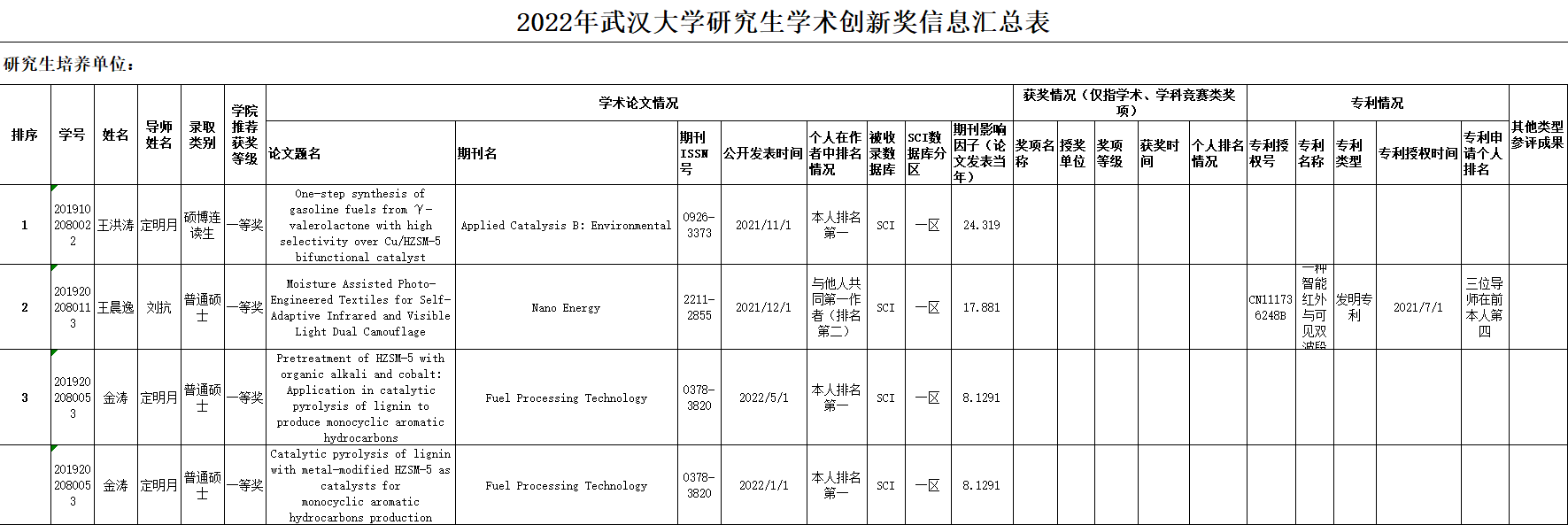 关于2022年研究生学术创新奖一等奖推荐名单的公示