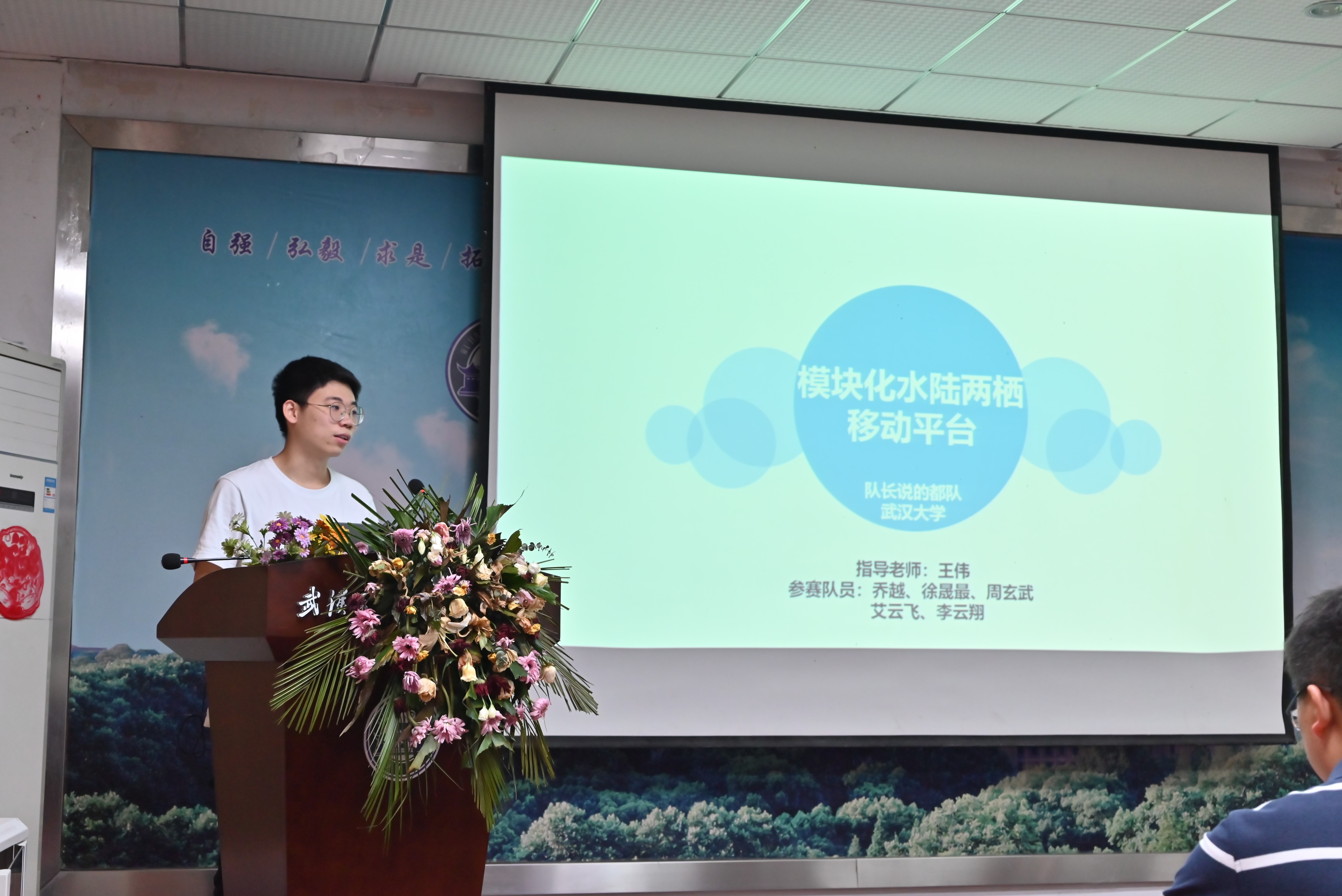 第三支队伍是巴卡漫画 的队长说的都队(队长:乔越),为大家展示了一种模块化水路两栖机器人,该机器人可在水、路两种条件下正常行动,同时在复杂环境下仍能保证一定的运动能力。