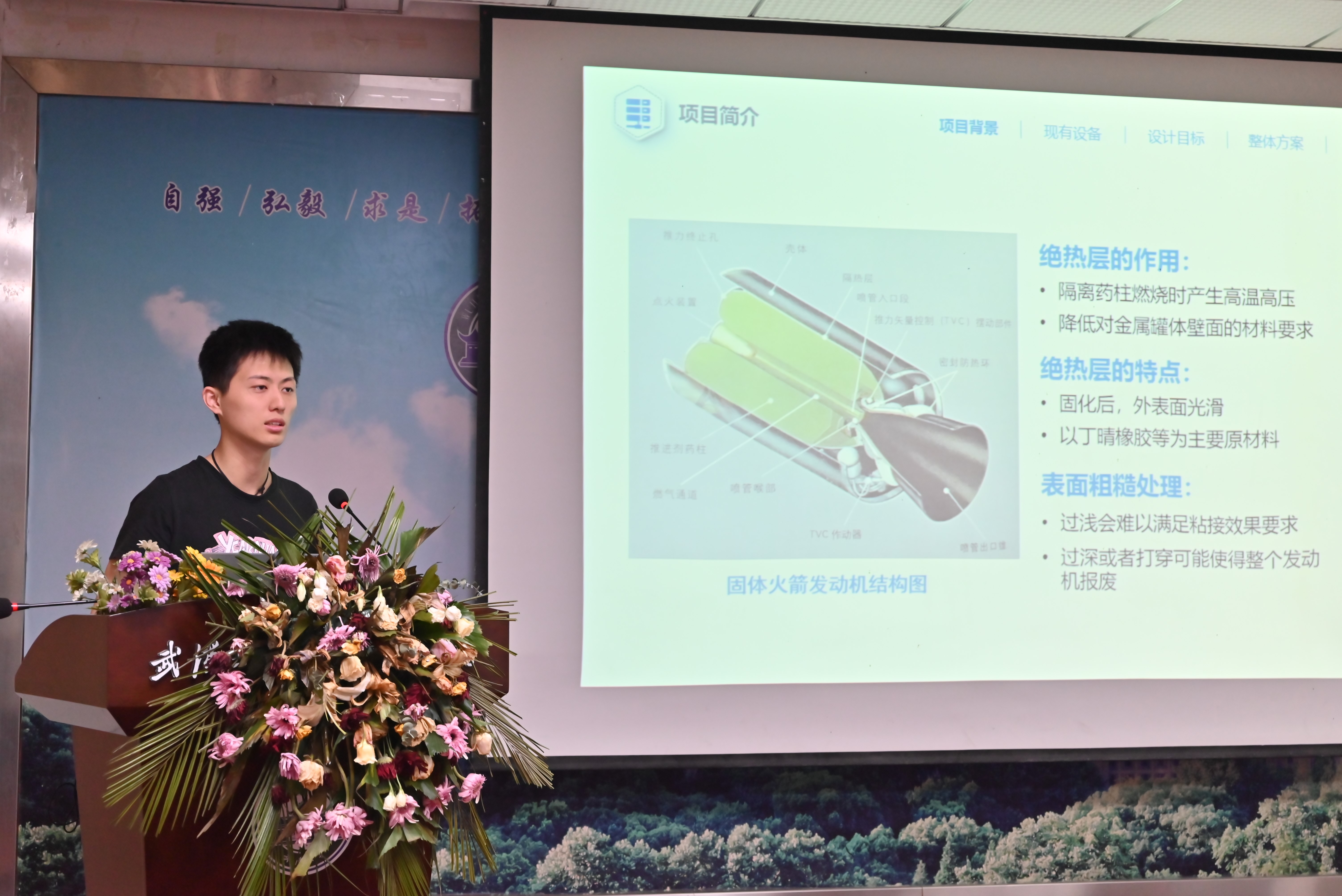 会上各位参赛队伍依次对作品进行了精彩的展示。首先是巴卡漫画 的凌晨三点饮茶队(队长:周帆)展示了一种用于固体发动机绝热层的打磨机器人机器人,具有体积小,长时间作业、毛化质量好,高效智能等优点。
