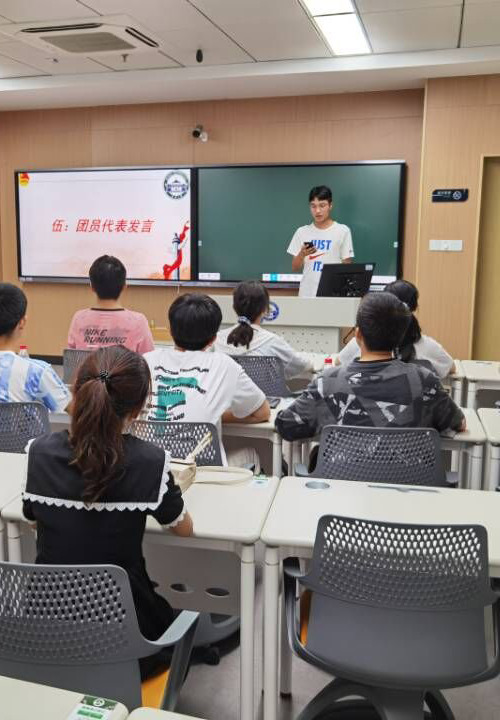 班长杨昊发言,表达了自己对青年、对社会、对国家的相关思考,体现了新时代青年深厚的爱国情怀。随后,同学们集体观看《觉醒年代》节选片段,革命先烈们的大无畏精神让同学们热血沸腾,激发同学们投身于无限革命事业的志向。