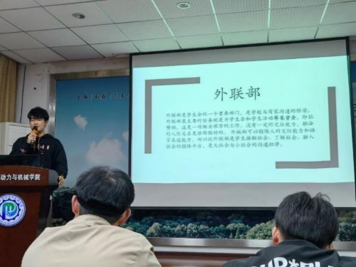 然后,学生会各部门代表上台对本部门进行了详细的介绍,细致地说明了本部门的日常事务与工作职责,展现了各个成员的风采面貌。这次详细介绍有助于各部门新成员之间更加熟悉,也便于日后部门之间事务的衔接与合作。