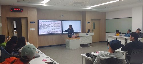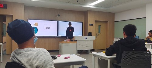 班会开始后,班长彭云通过介绍武大的电动车种类和询问同学们对这些电动车的看法引入主题,向同学们普及电动车行车安全相关知识,她以精心准备的ppt向同学们讲解电动车不规范行车的安全隐患。