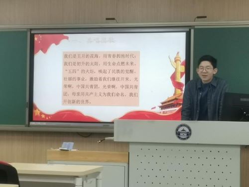 团日活动开始,李祥宇带领大家齐唱团歌,伴随着激昂的旋律,第一团支部全体团员的歌声在教室中响起,充分彰显了团支部全体团员对中国共青团、共产党的热爱和投身祖国建设的热情。唱毕,他开始介绍本次团日活动的主题,并表示,我们要学习和弘扬孙中山先生等革命先烈的崇高精神,为实现中华民族的伟大复兴努力奋斗。