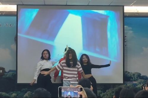 本次见面会准备了相当丰富多彩的娱乐活动。初始,王鑫、李灿明合唱一首《海阔天空》,两位激情澎湃的演唱引得台下尖叫声连连;21级新成员们通过抽签的方式两两组队进行“破冰游戏”,相互熟悉彼此,再向在场所有人介绍对方;快乐的“萝卜蹲”游戏到来,各部门推选出了自己的“人气王”上台比赛,在紧张刺激的氛围里,大会变得热闹了起来;紧接着团委各部门纷纷展示了各自的才艺和本领,青传的套子舞、组织部的女团舞、实践部的情景剧《华翔买瓜》、新闻中心的广场舞……台上,大家尽情演绎着动机团委人的艺术风采,展现着新一届团委的风姿和活力;台下,观众们兴致极高,纷纷为台上的演出鼓掌和连连喝彩!在载歌载舞中,本次团委见面会的氛围也推向了高潮!