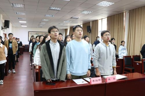 全体人员共唱共青团团歌,激昂有力的歌声在报告厅中响起,尽显团委成员们蓬勃朝气和满满活力。