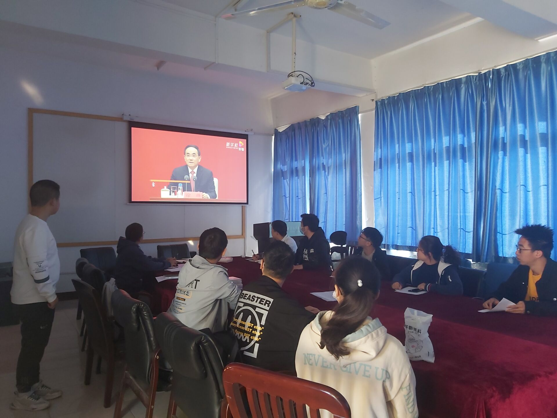 “过去一百年,中国共产党向人民、向历史交出了一份优异的答卷。现在,中国共产党团结带领中国人民又踏上了实现第二个百年奋斗目标新的赶考之路。” 长河浩荡,势不可挡。站在新的历史起点,党的十九届六中全会必将进一步凝聚起百年大党的智慧力量。在以习近平同志为核心的党中央坚强领导下,伟大的中国共产党必将在全面建设社会主义现代化国家、实现第二个百年奋斗目标新征程上再创辉煌。在接下来的学习工作中,相信参会成员们会将本次学习的收获应用其中,为校、为党、为国贡献出力所能及的力量。