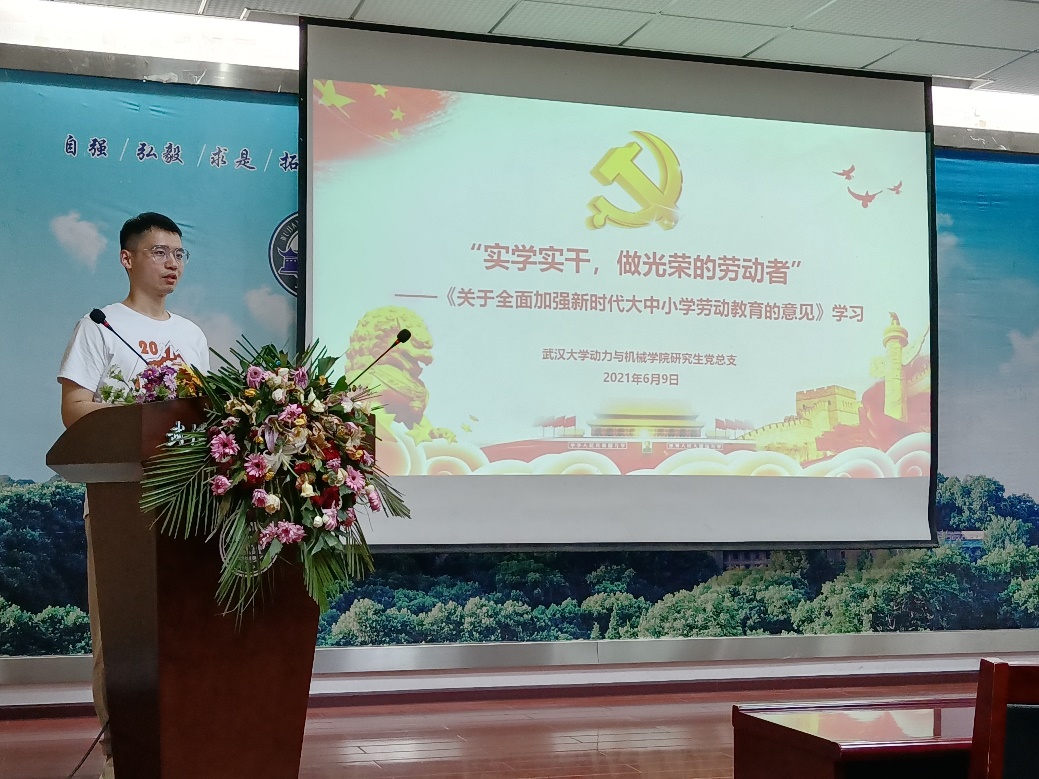 会上,刘泽庭首先带领大家学习了“实学实干,做光荣的劳动者”——《关于全面加强新时代大中小学劳动教育的意见》,并就劳动主题教育工作进行了部署明确。各支部在开展活动时应注意以下四点:一是高度重视,统筹组织,二是贵在行动,确保实效,三是强化教育,做好宣传,四是注重长效,强化考核。会议强调各党支部要结合实际,将研究生实际劳动情况作为研究生参评优秀学业奖学金的必要条件,确保研究生思想上受洗礼、能力上受锻炼、素质上有提升,奋斗精神得到彰显。