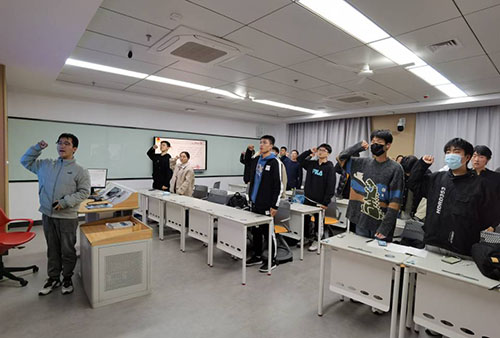活动伊始,团支书王卓同学欢迎了大家的到来并介绍了此次团日活动的主题——贯彻学习2021年十九届六中全会精神。紧接着与会团员全体起立,在团支书的带领下齐唱团歌。