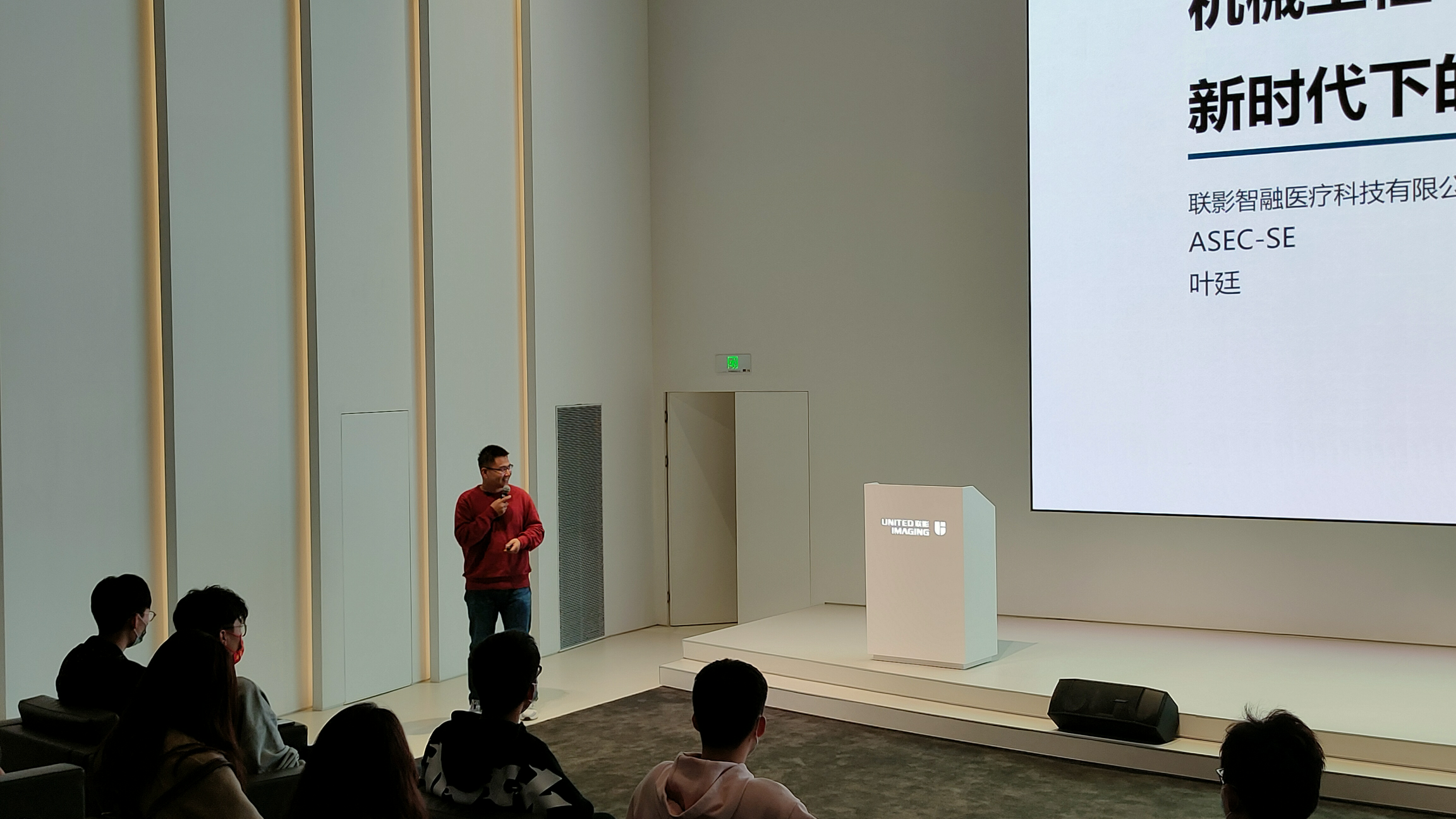 视频看罢,同学们对于联影公司有了基本的了解。接下来,联影公司的销售总监为同学们讲解放置于展厅的一系列高端仪器,如3.0T探索核磁共振、Pet CT等等,全方面地开阔了同学们的眼界,也点燃了他们心中投身于科研、研制高端科技设备的雄心壮志。