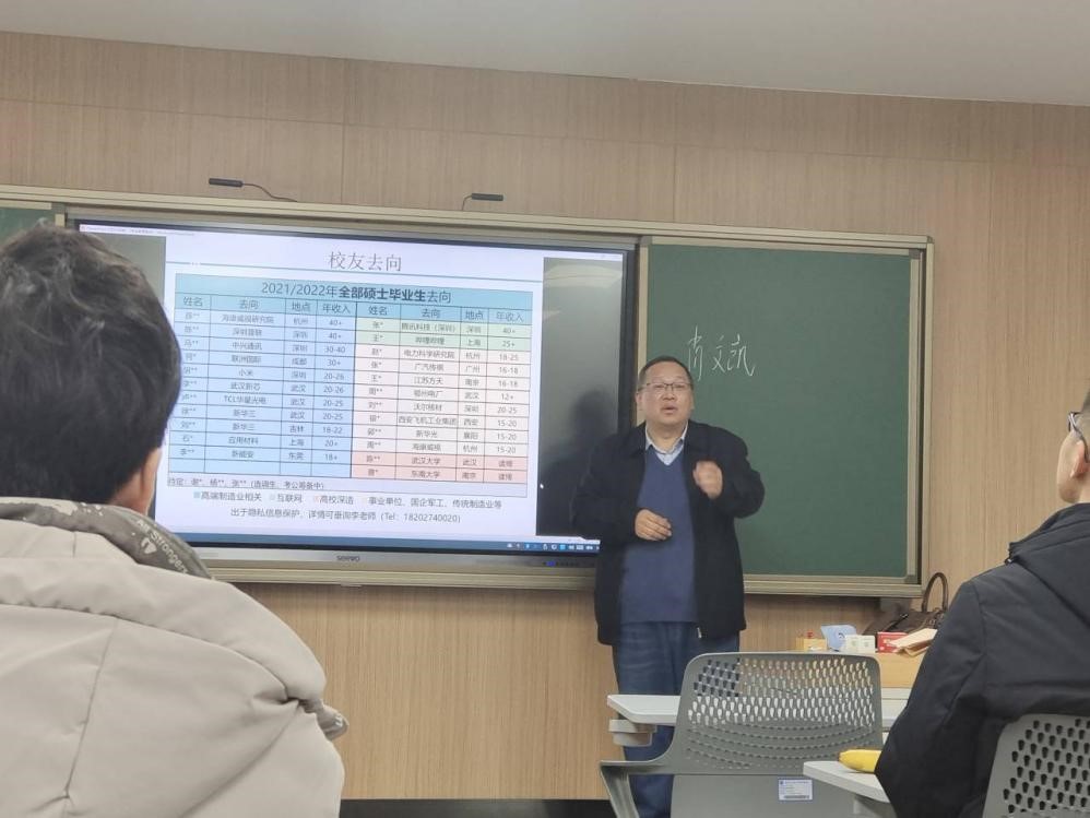 交流会开始,肖文凯从基本情况、奖学金政策、培养方案、校友去向等四个方面向大家介绍材料成型及控制工程专业,他说:“成型专业是集机械、材料、计算机及控制多学科交叉融合专业”。肖文凯还将自己主编的《身边的材料学》一书逐一签上寄语,赠送给在座的同学,加深了同学们对材料成型专业的兴趣与了解。材料工程系几位研究生学长介绍了推荐免试攻读研究生相关的要求与细则,郝华丽也简单回答了同学们关注的一些问题。