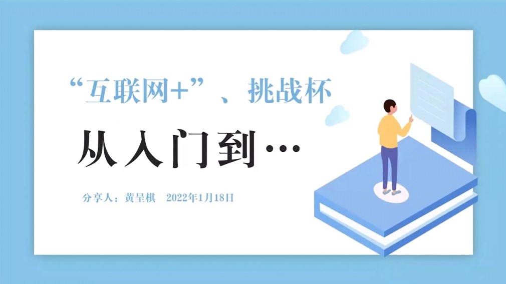 接着黄呈棋老师向同学们分享了他去年的参赛经验和感想。从项目来源到团队组建,黄老师详细讲解了队伍在前期准备过程中的注意事项,为同学们组建队伍提供了指导。从材料准备到路演答辩,黄老师以PPT为主体分享了如何才能“高精尖且接地气”地将团队成果展示出来,同学们受益匪浅。最后黄老师预祝同学们实现“从入门到精通”,在比赛中能够取得满意的成绩。