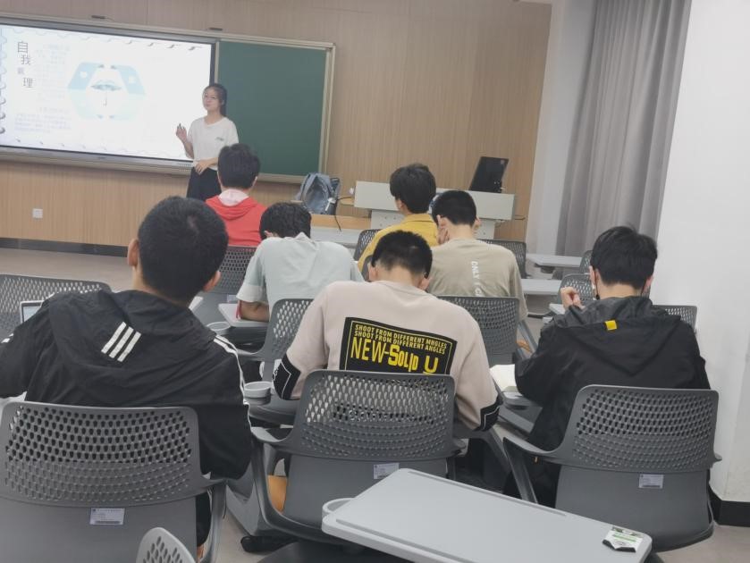 (图1为心理委员王家玲为大家讲解主题相关内容)