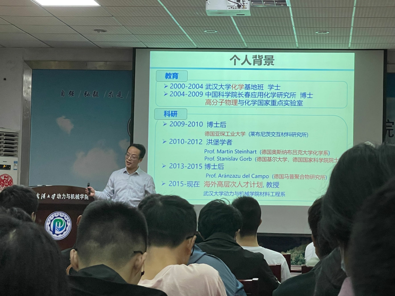 薛龙建介绍了多种仿生材料后,许多同学对该课题表示浓厚的兴趣,并在自由提问时提出了在材料应用设计方面的疑惑,薛龙建一一回答。他强调,科研时许多阻碍都需要我们用天马行空的想象力去实现,同学们应当保持一颗好奇心,尤其是在大自然中观察学习。他寄语青年:“我们每个人都应该怀有积极投身祖国建设的责任感和使命感,希望同学们能有忧患意识,在长远的眼光下为祖国做出自己的贡献!”